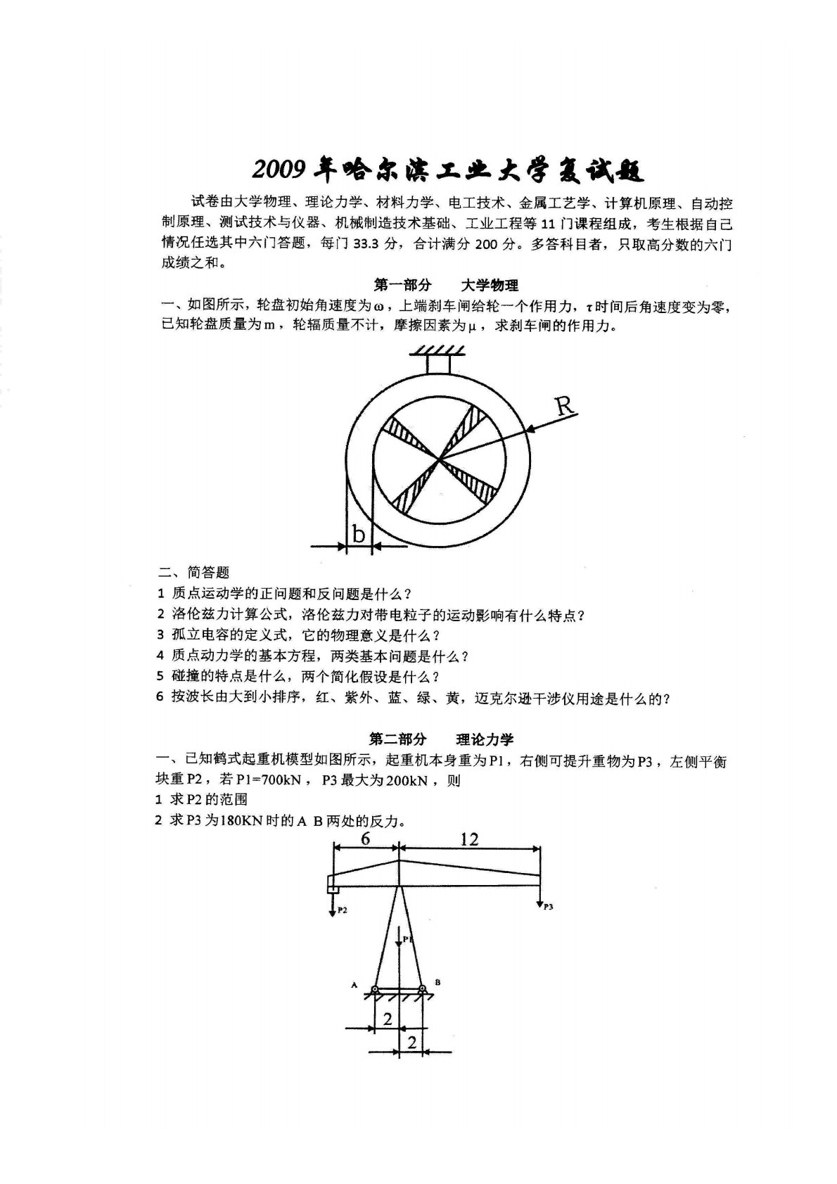 哈尔滨工业大学机械工程综合课2009年复试真题