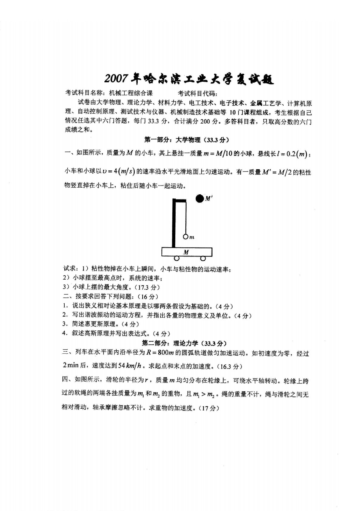 哈尔滨工业大学机械制造及其自动化2007年复试真题