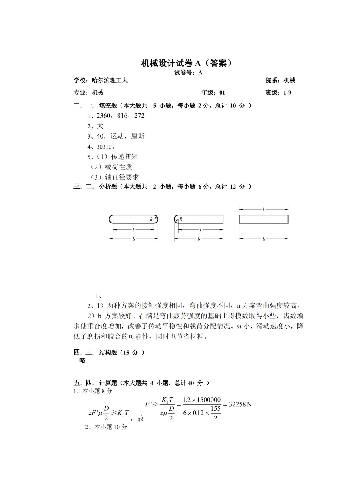 哈尔滨理工大学801机械设计2003-2004年试题答案