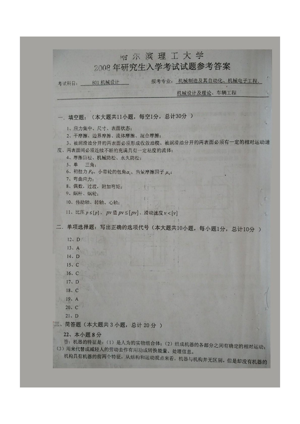 哈尔滨理工大学801机械设计2008年真题答案