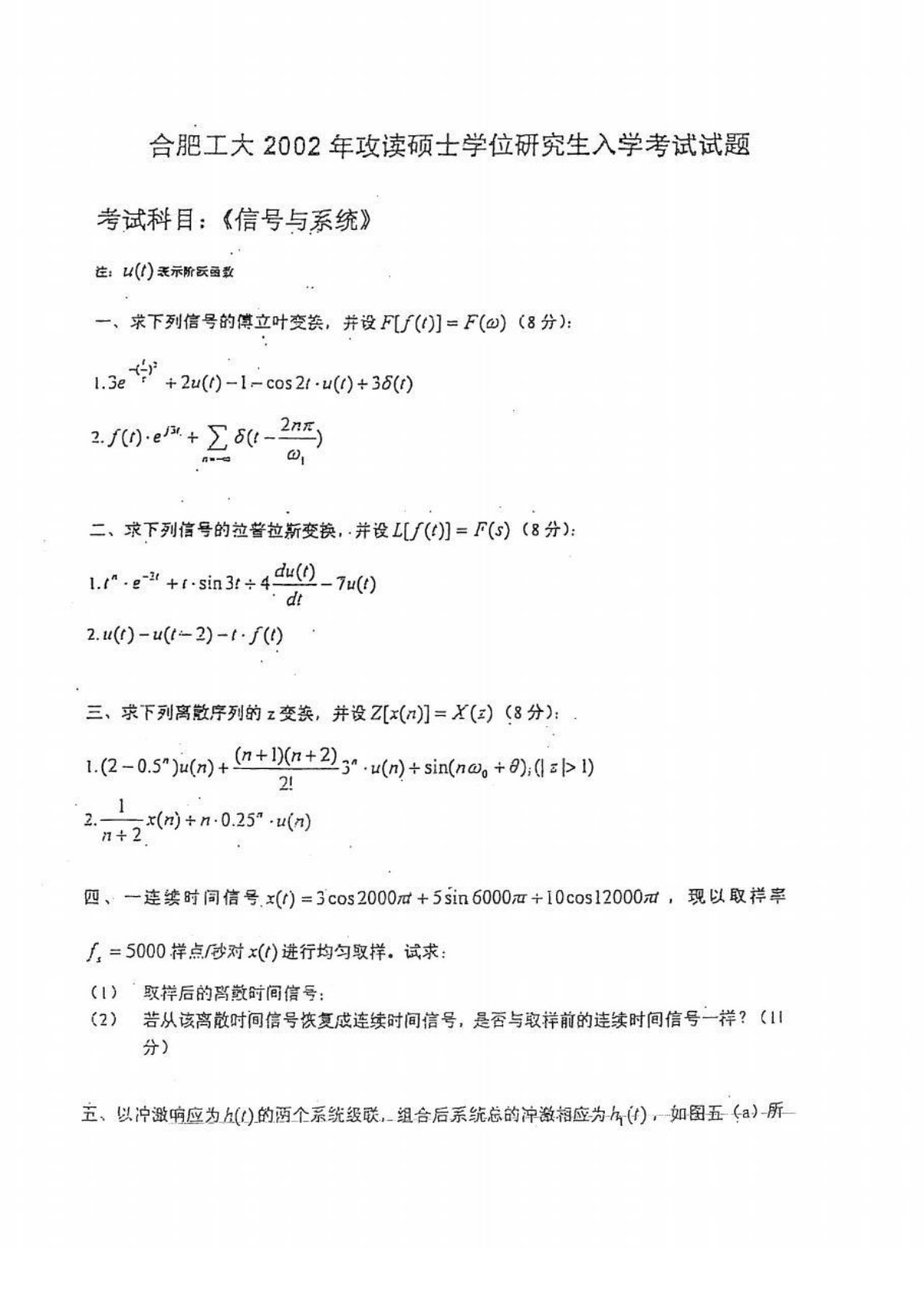 合肥工业大学833信号分析与处理综合2002年考研真题