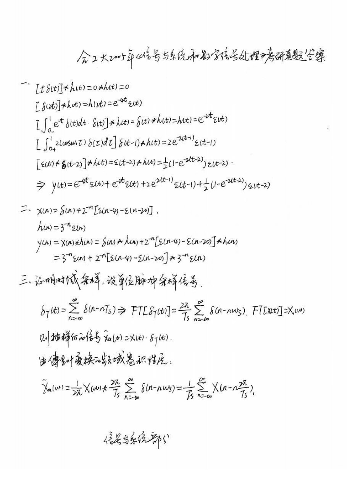 合肥工业大学833信号分析与处理综合2005年考研真题答案解析