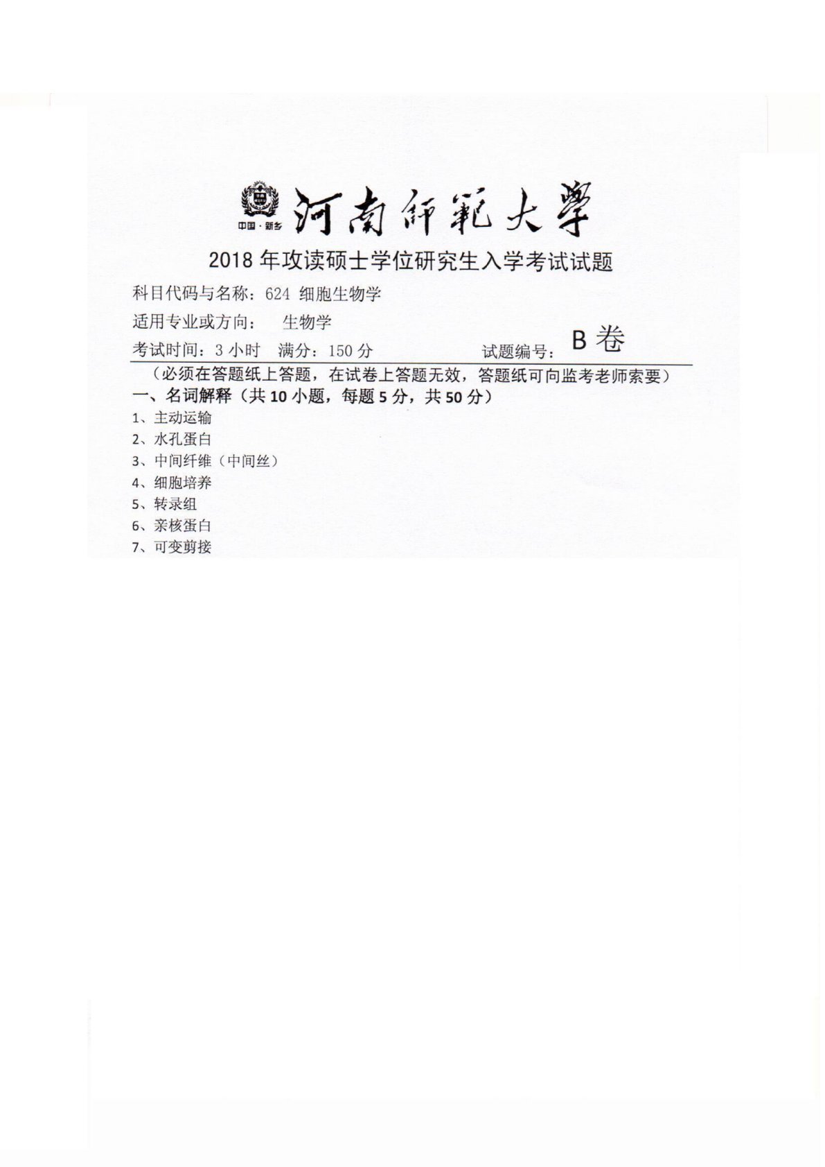 河南师范大学825细胞生物学2018年真题
