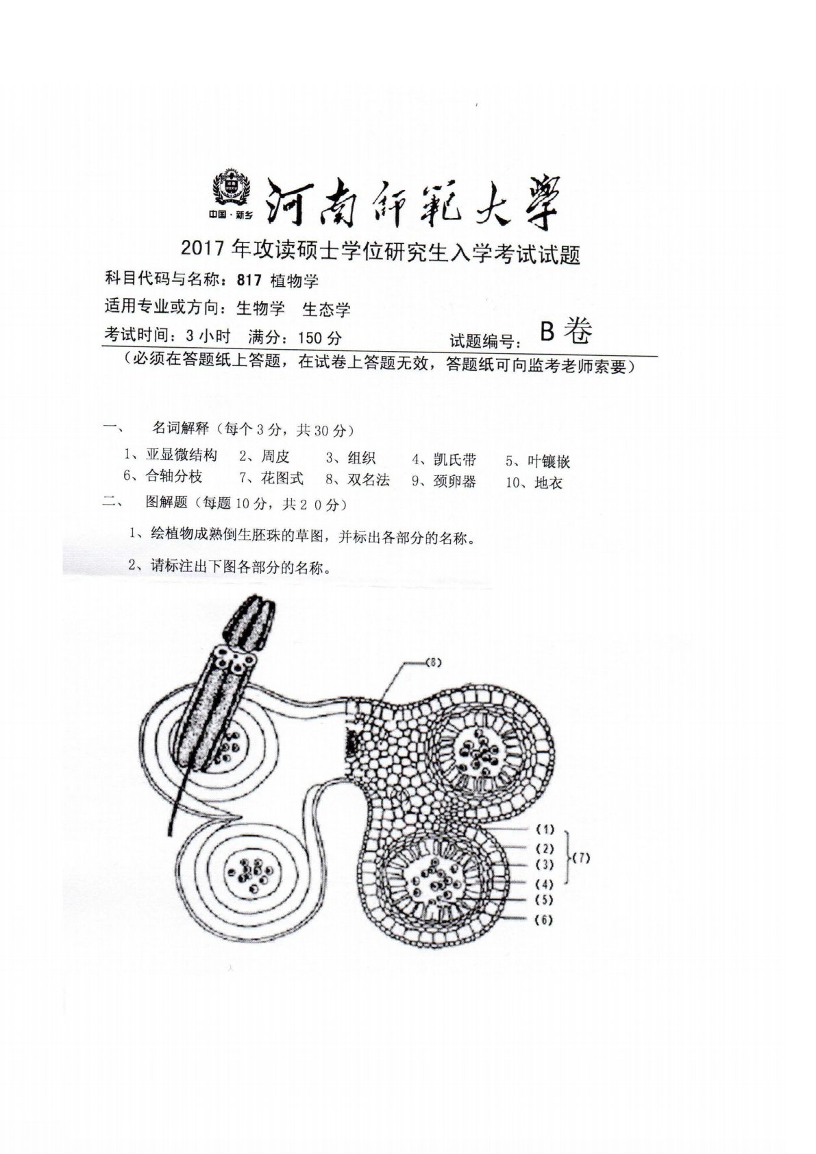 河南师范大学0406植物学2017年真题