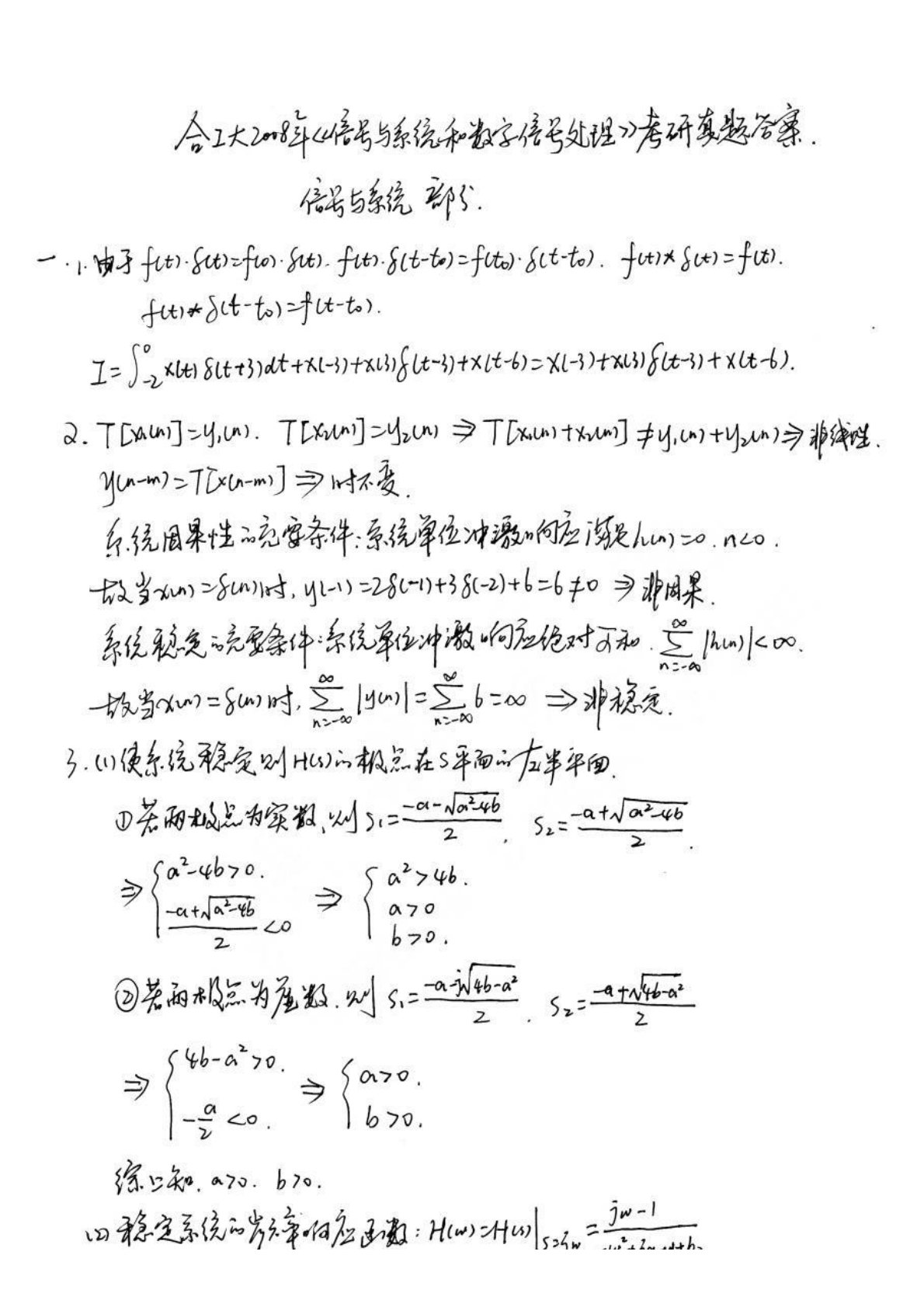 合肥工业大学833信号分析与处理综合2008年考研真题答案解析