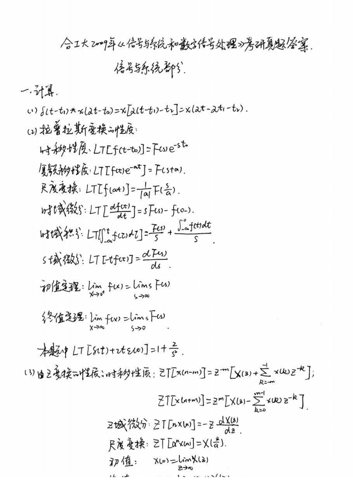 合肥工业大学833信号分析与处理综合2009年考研真题答案解析