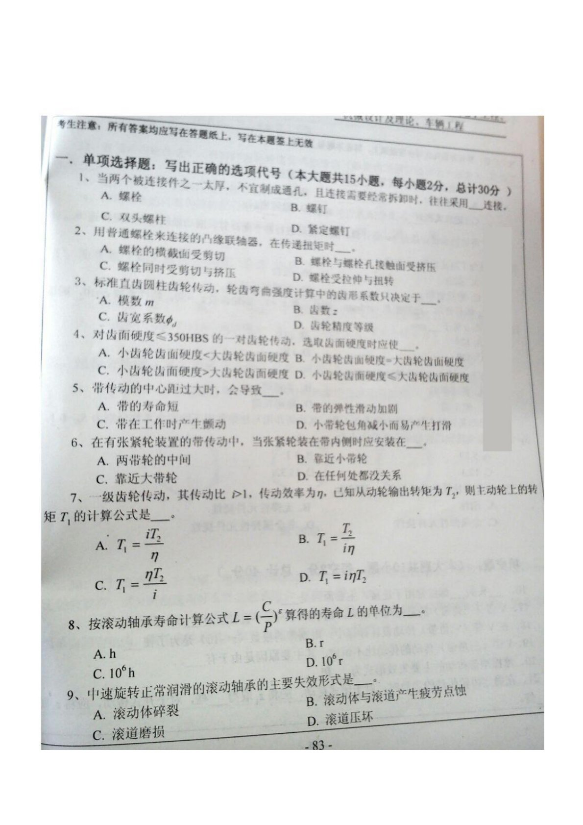 哈尔滨理工大学801机械设计2010年真题