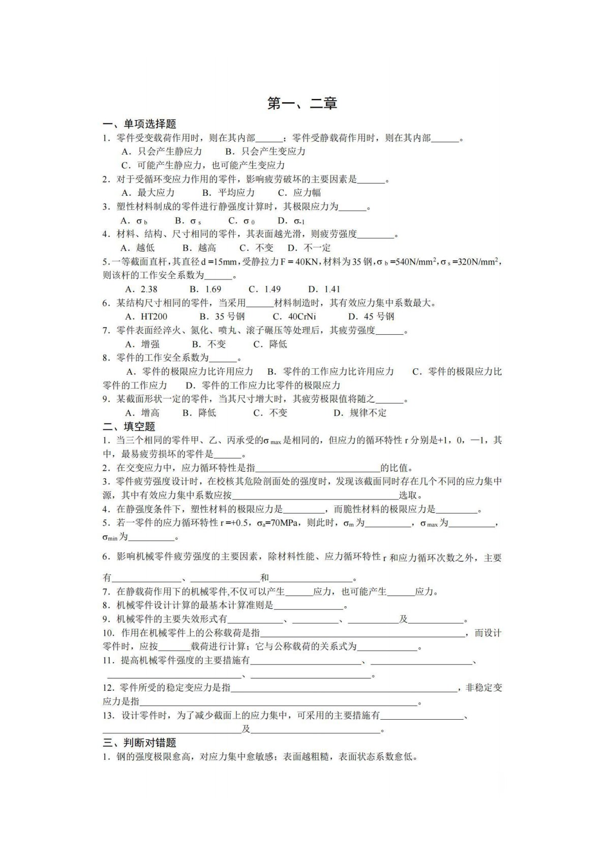哈尔滨理工大学801机械设计小题集