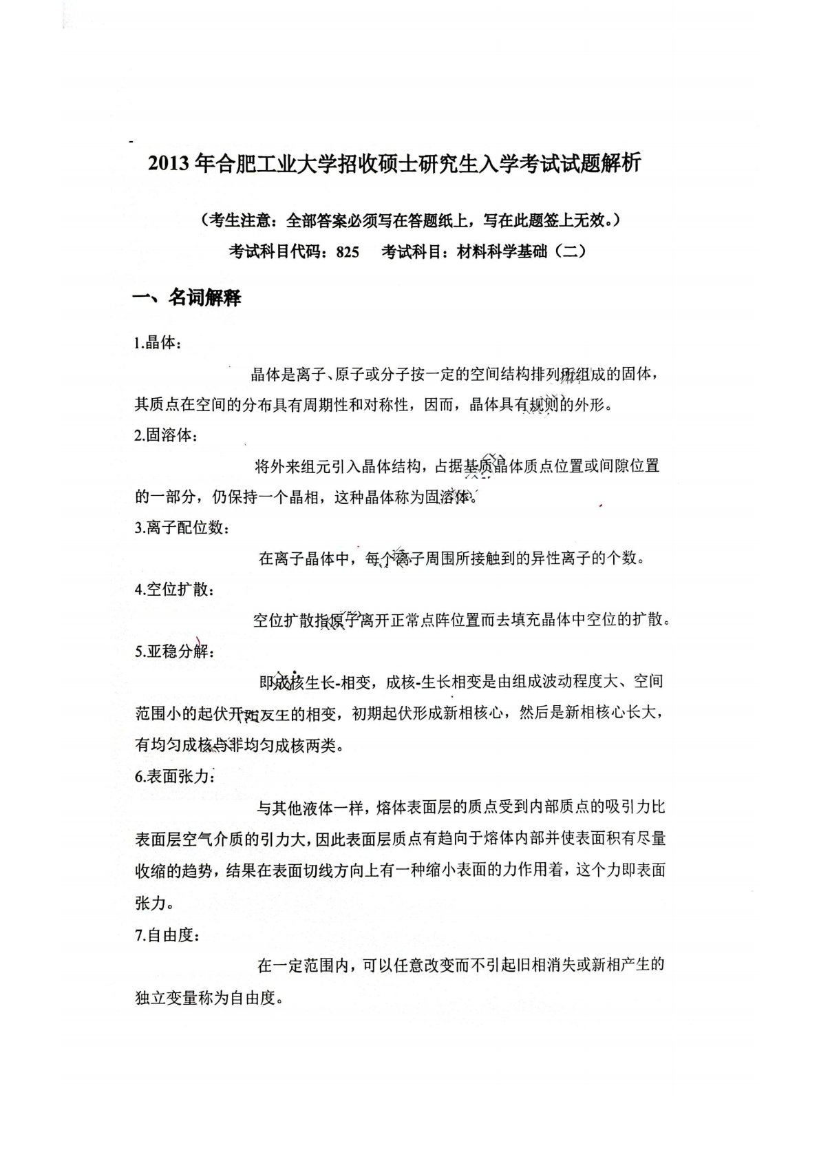 合肥工业大学815材料科学基础2013年真题答案