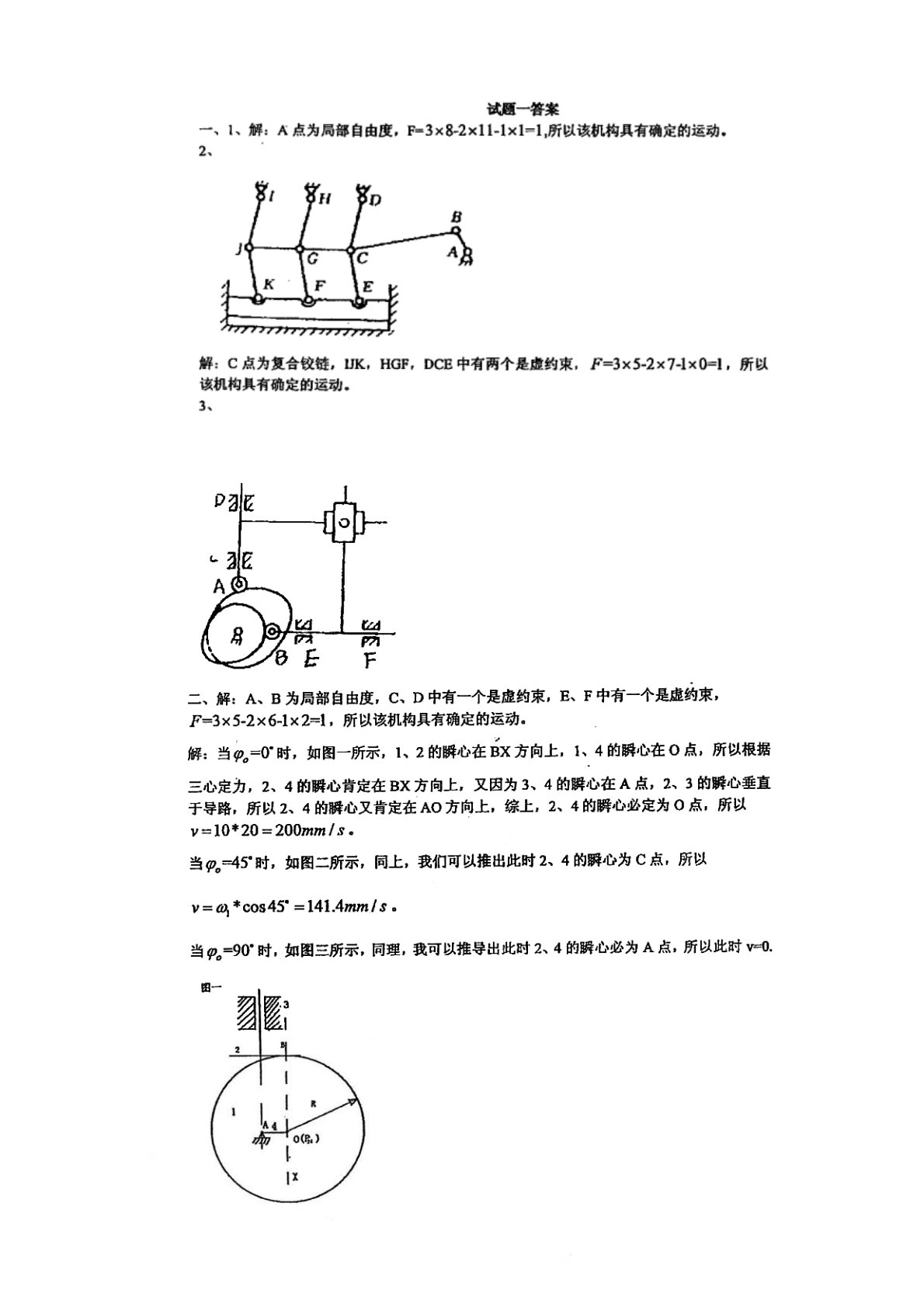合肥工业大学815机械原理模拟真题1答案解析