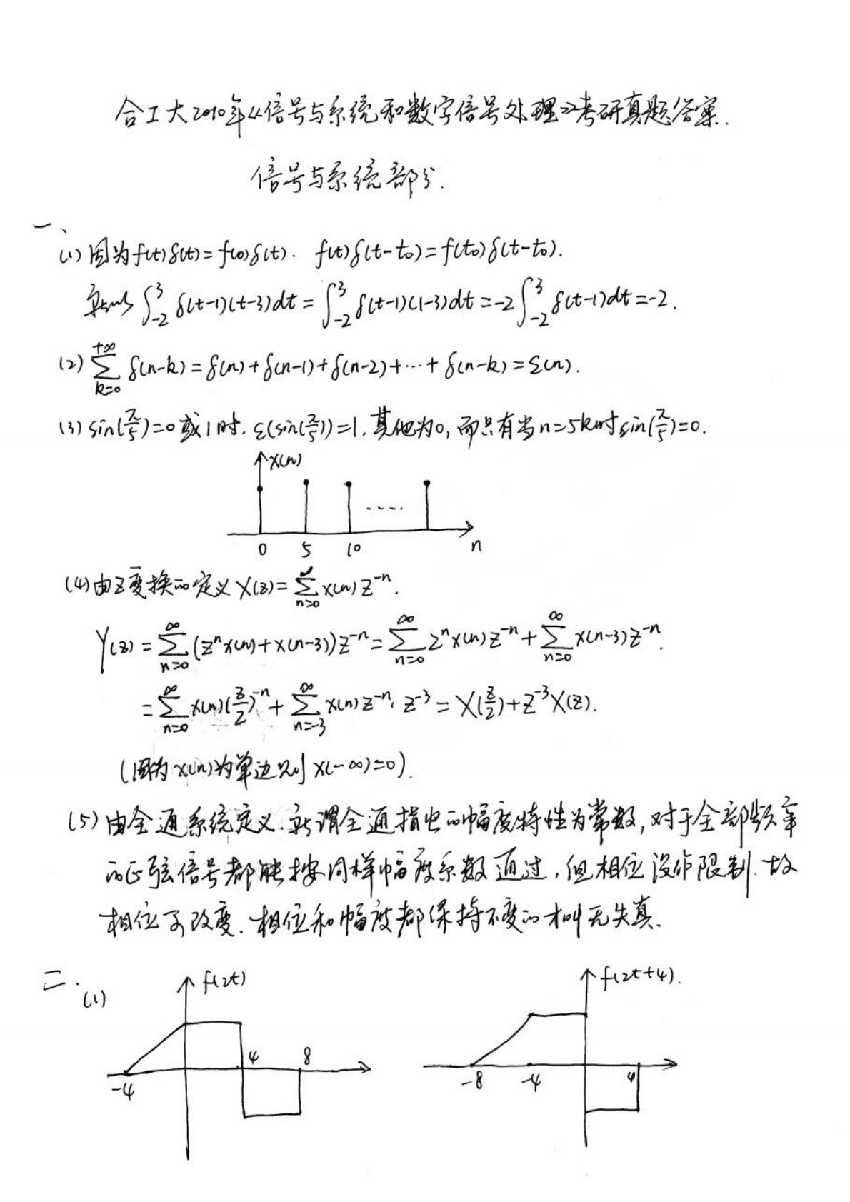 合肥工业大学833信号分析与处理综合2010年考研真题答案解析