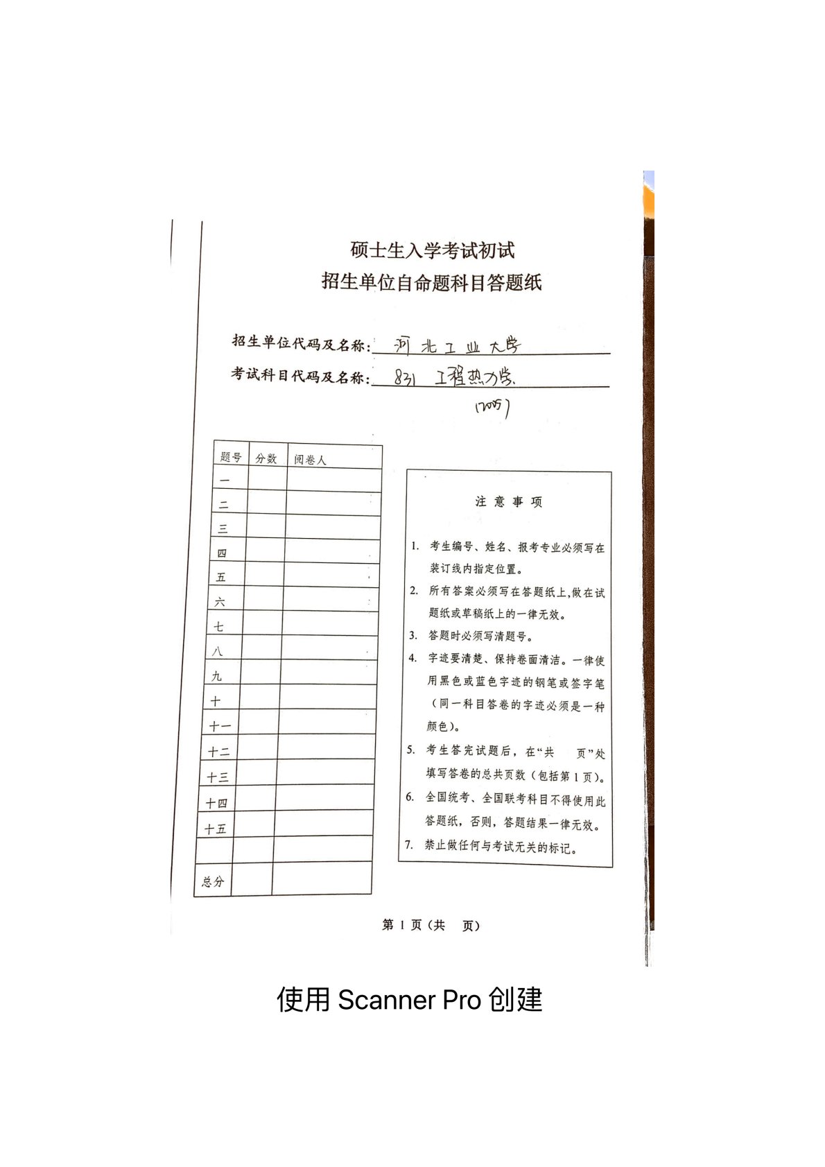 河北工业大学831工程热力学2005年真题(1)