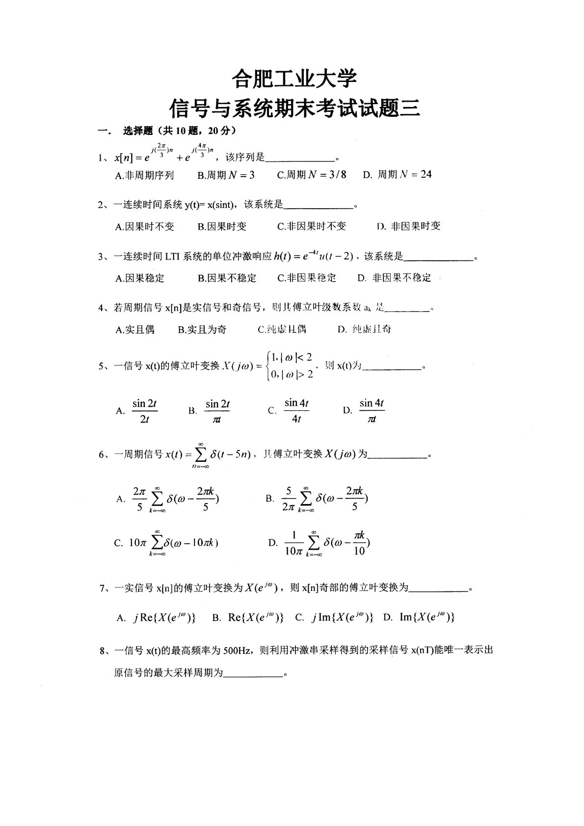 合肥工业大学833信号分析与处理综合期末试题3