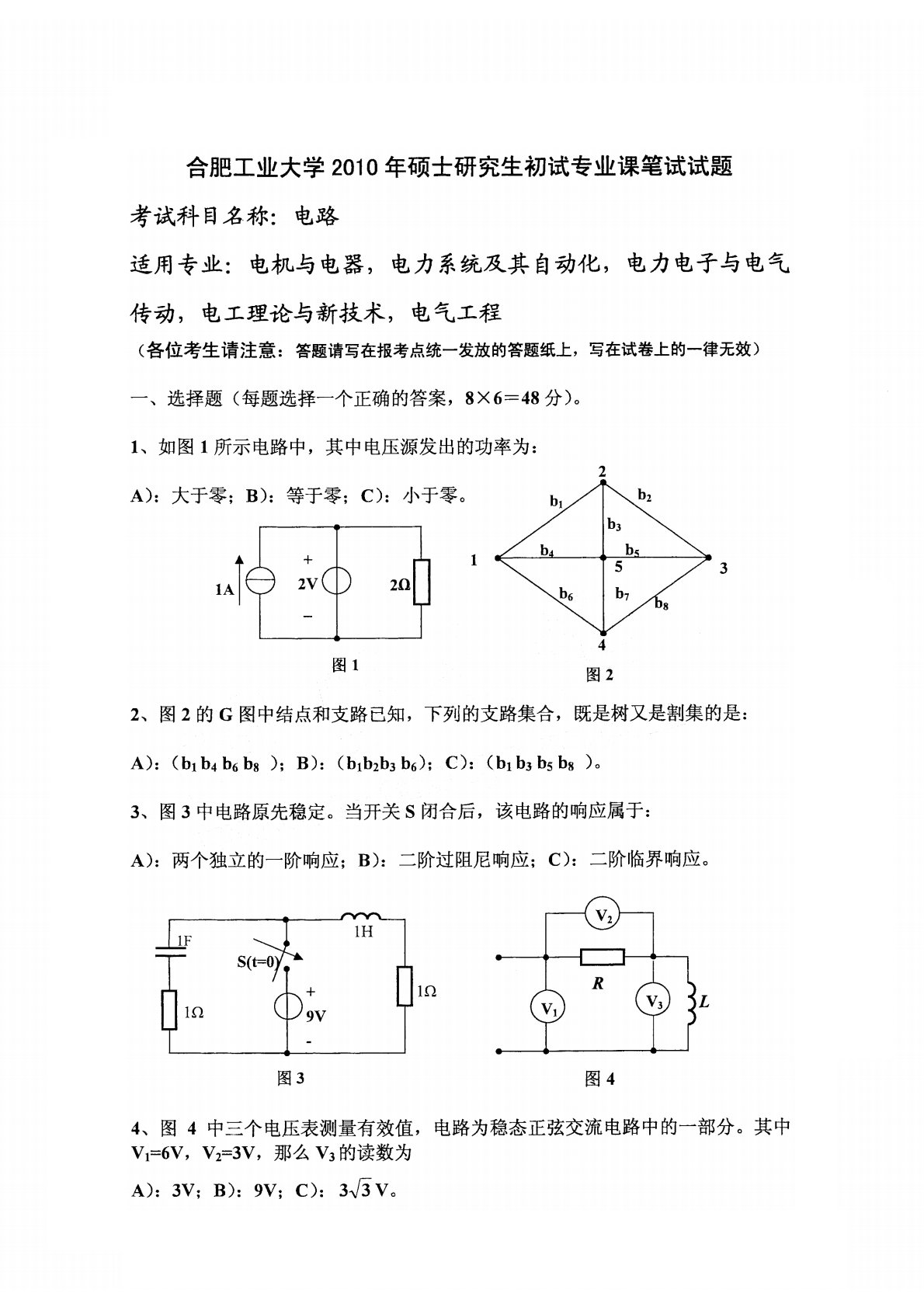 合肥工业大学2010年830电路考研真题