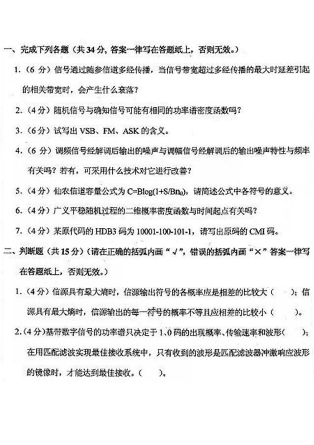 河北大学860通信原理2010年真题