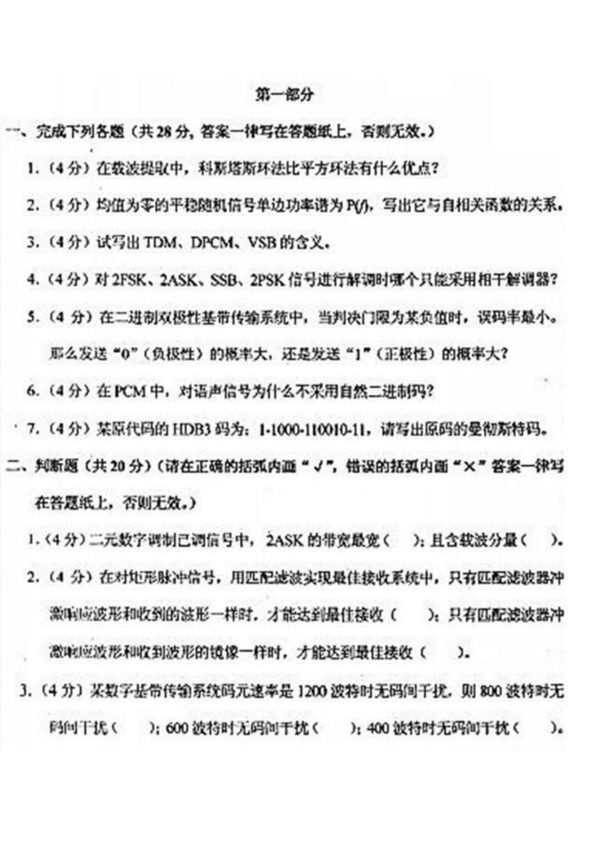 河北大学860通信原理2012年真题