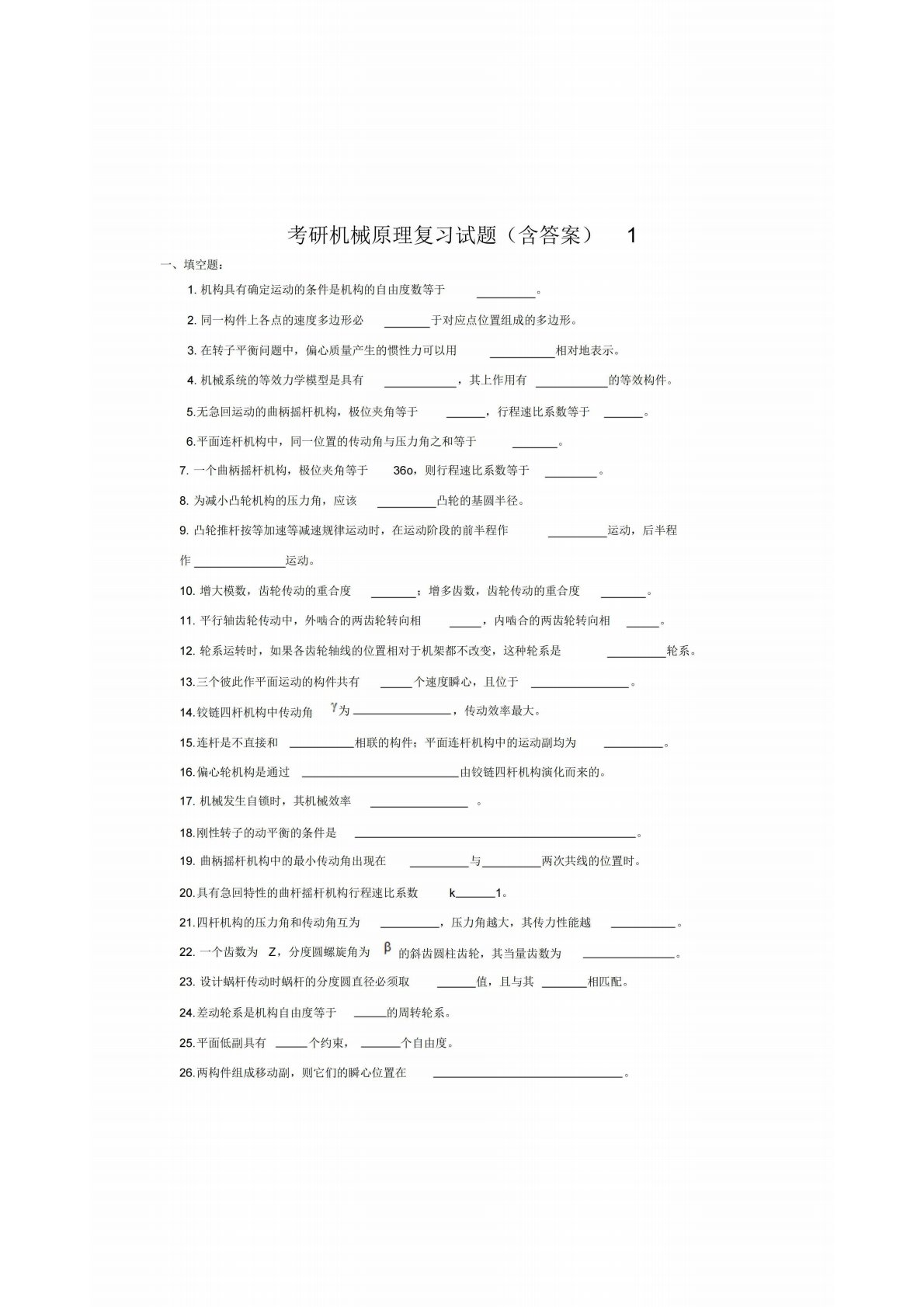 河北工程大学805机械原理复习试题