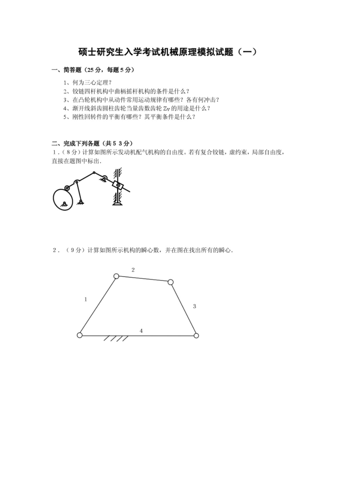 河北工程大学805机械原理模拟试题(一)
