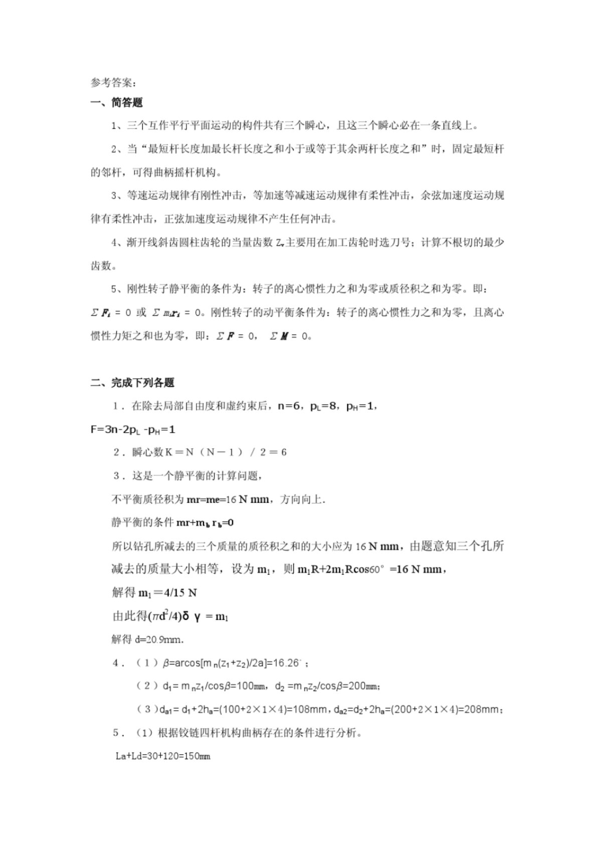河北工程大学805机械原理模拟试题答案(一)