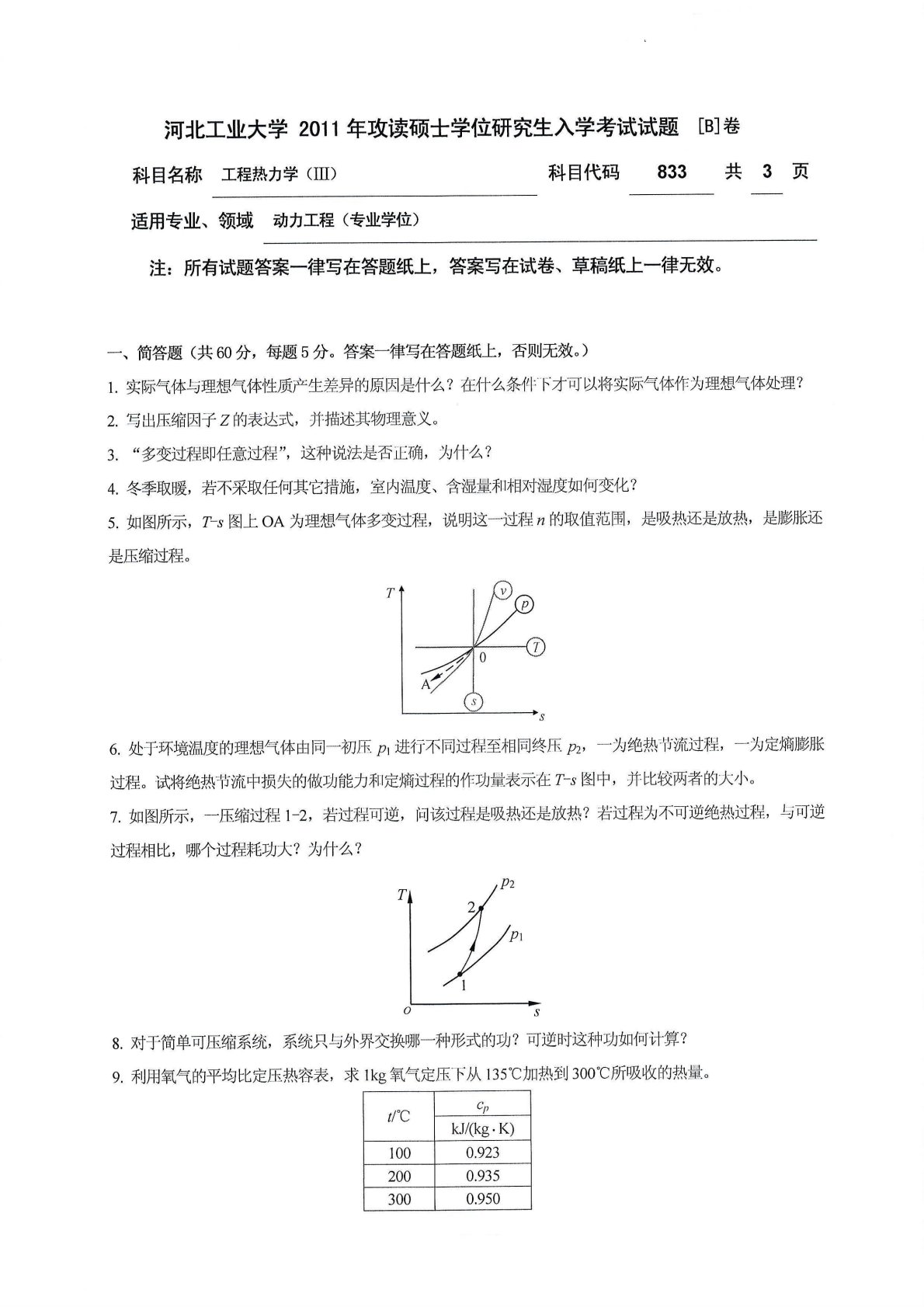 河北工业大学831工程热力学2011年真题III