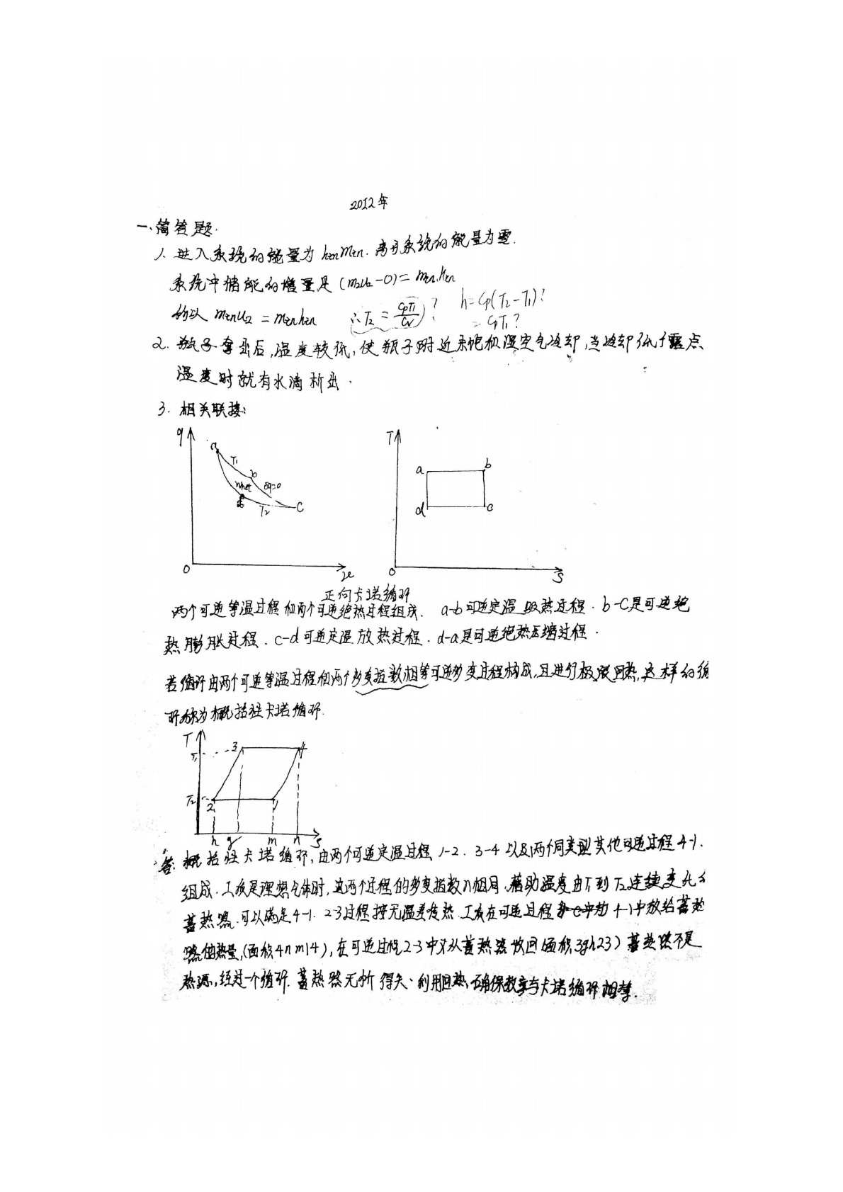 河北工业大学831工程热力学2012年真题答案
