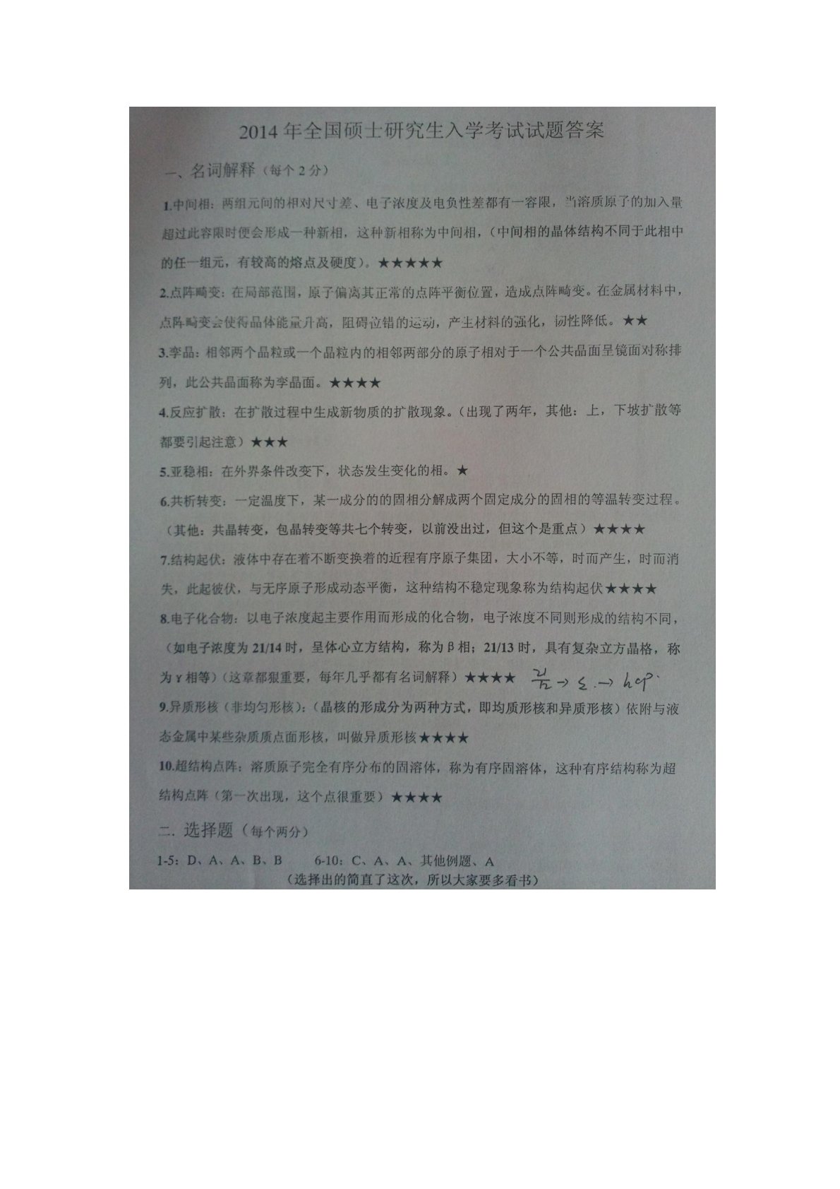 河北工业大学880材料科学基础2014年答案