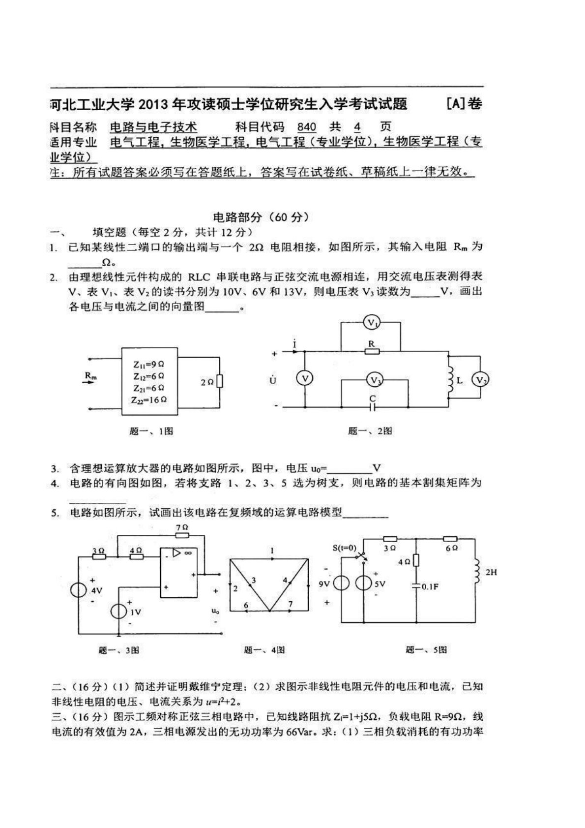 河北工业大学2013年840电工基础考研真题
