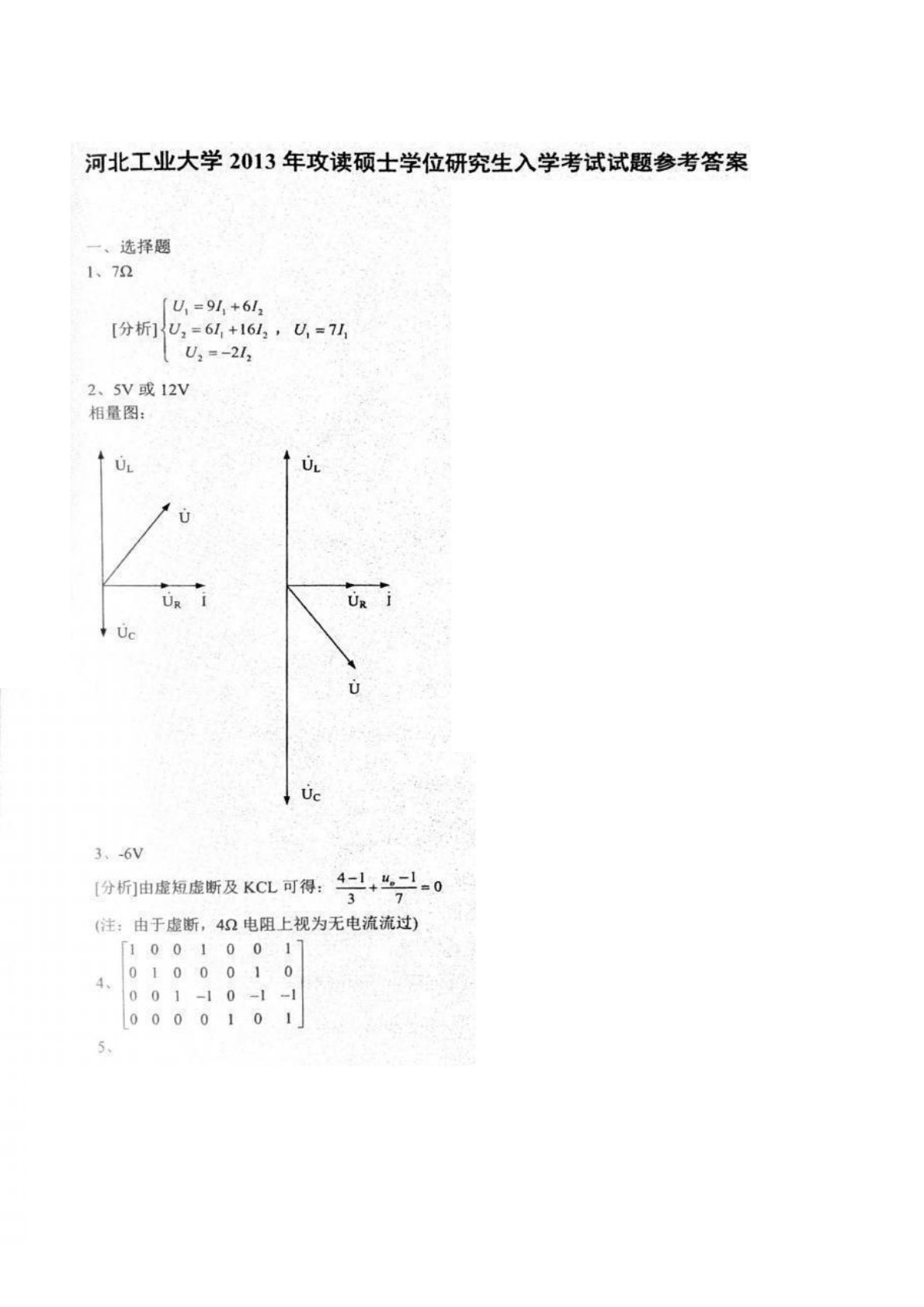 河北工业大学2013年840电工基础考研真题答案解析
