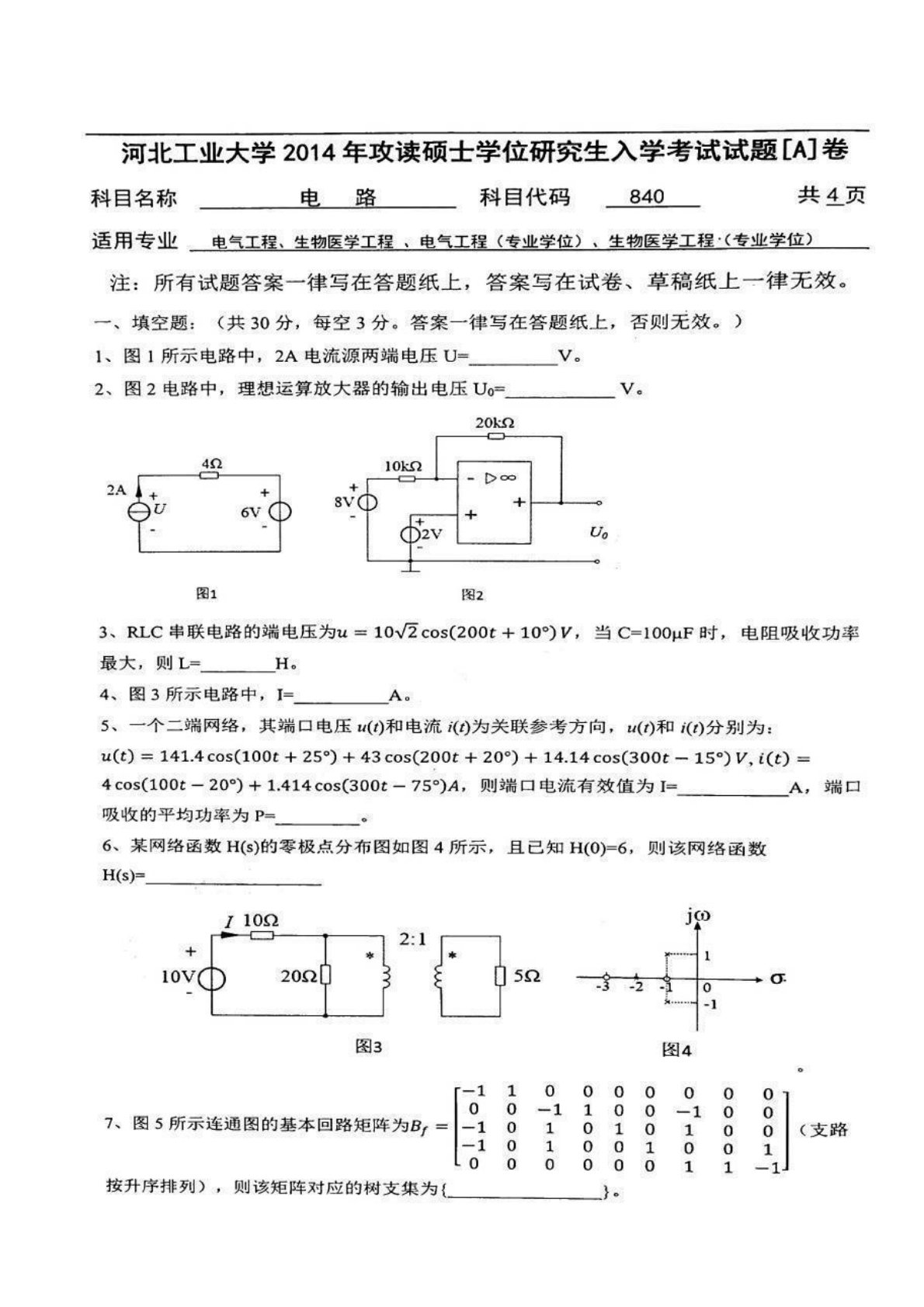 河北工业大学2014年840电工基础考研真题