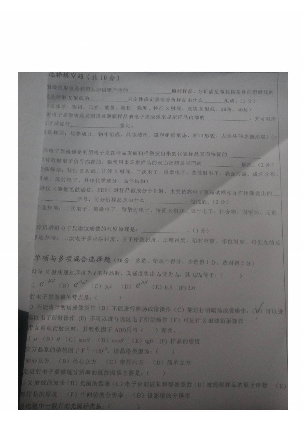 河北工业大学F1801材料综合材料分析测试技术期末题