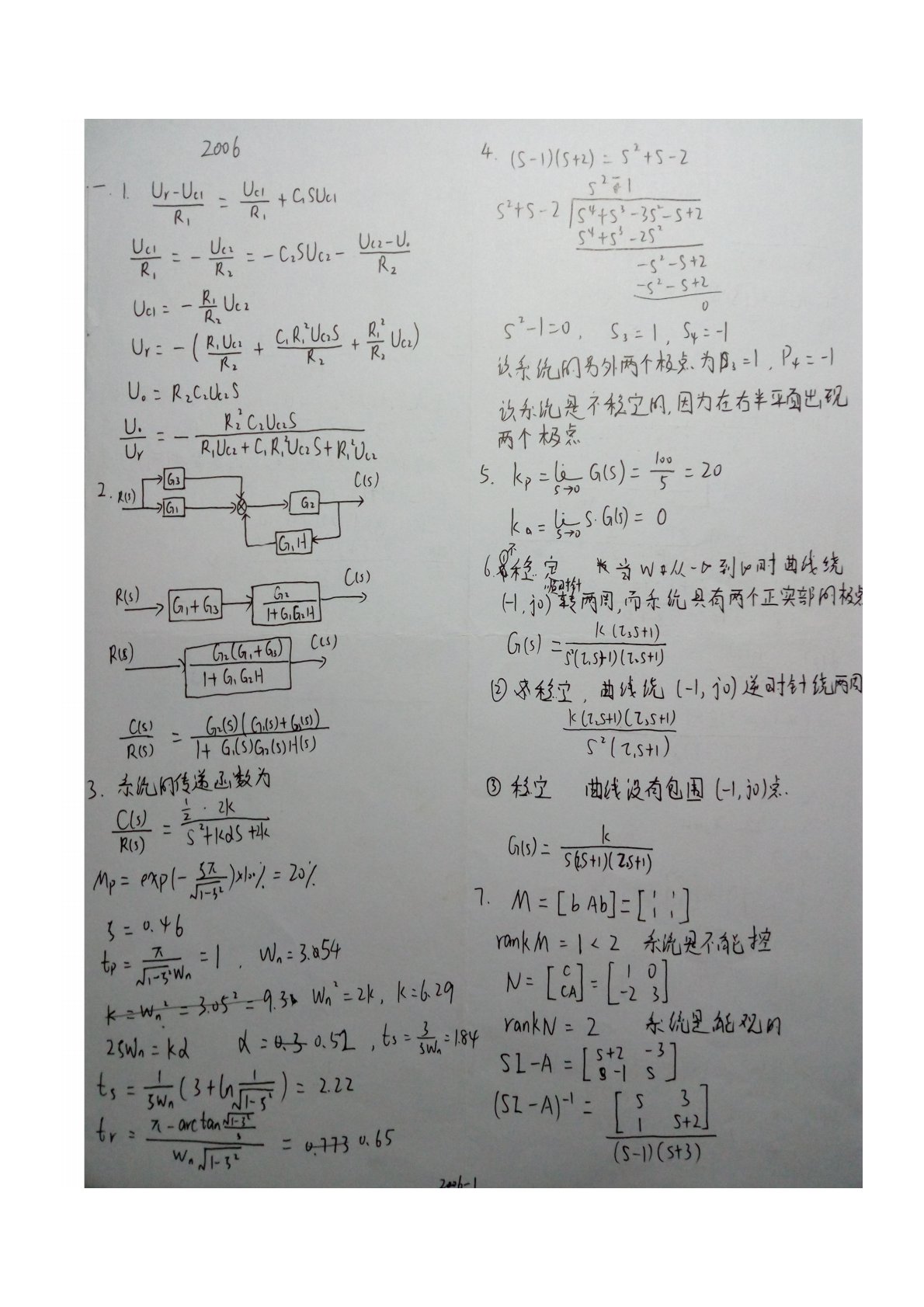 河北工业大学980自动控制理论(含经典及现代控制理论)2006年考研真题答案