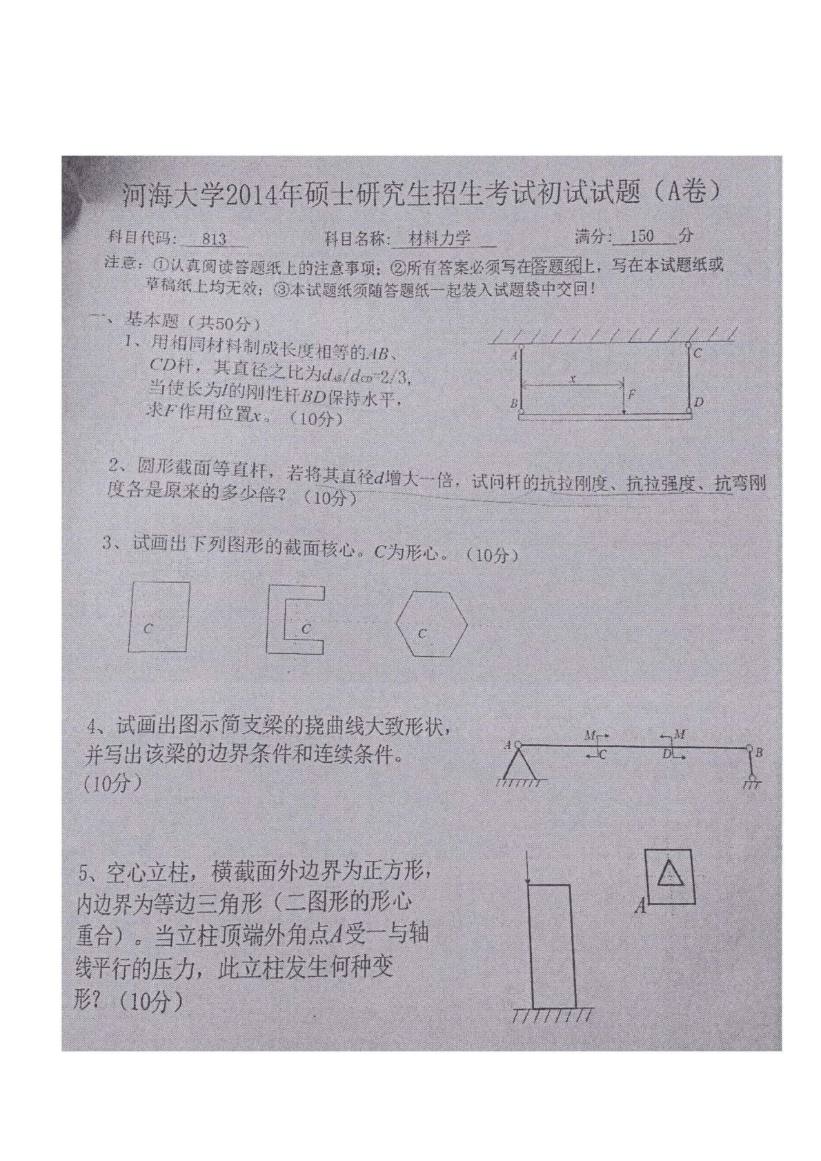 河海大学813材料力学2014年真题