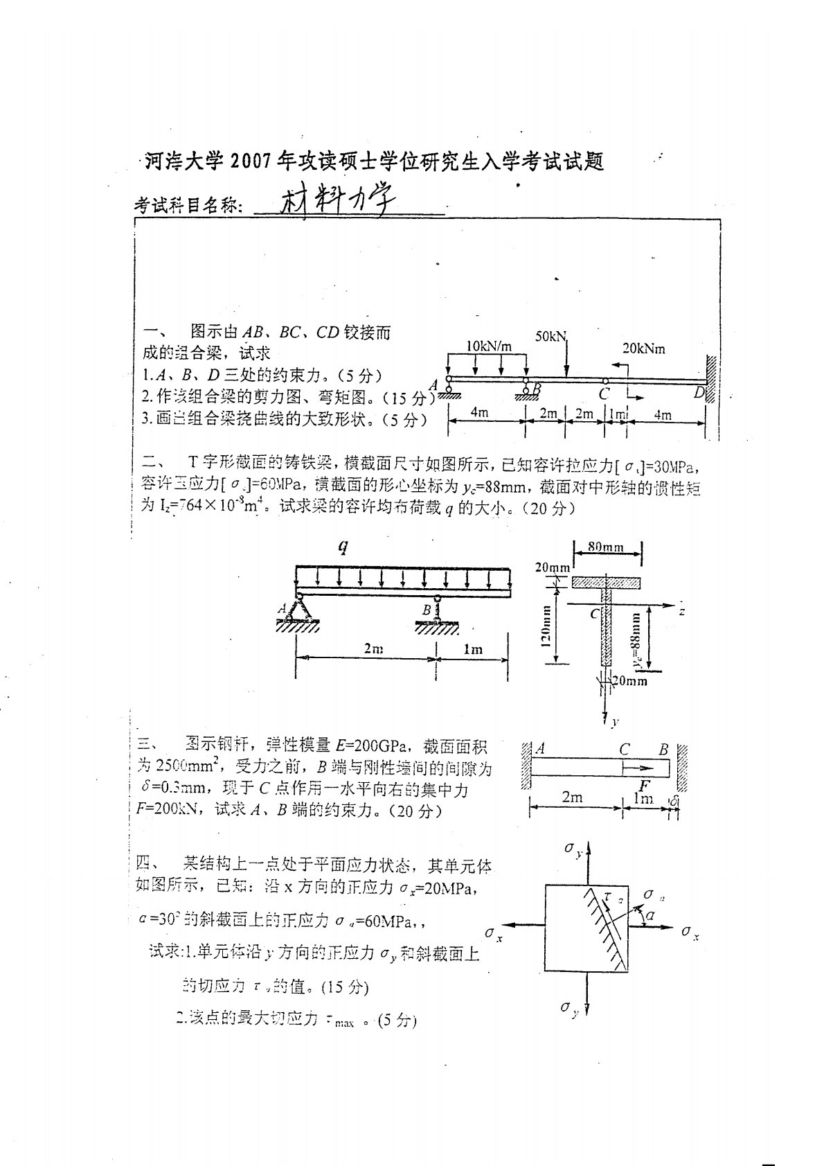 河海大学813材料力学2007年真题