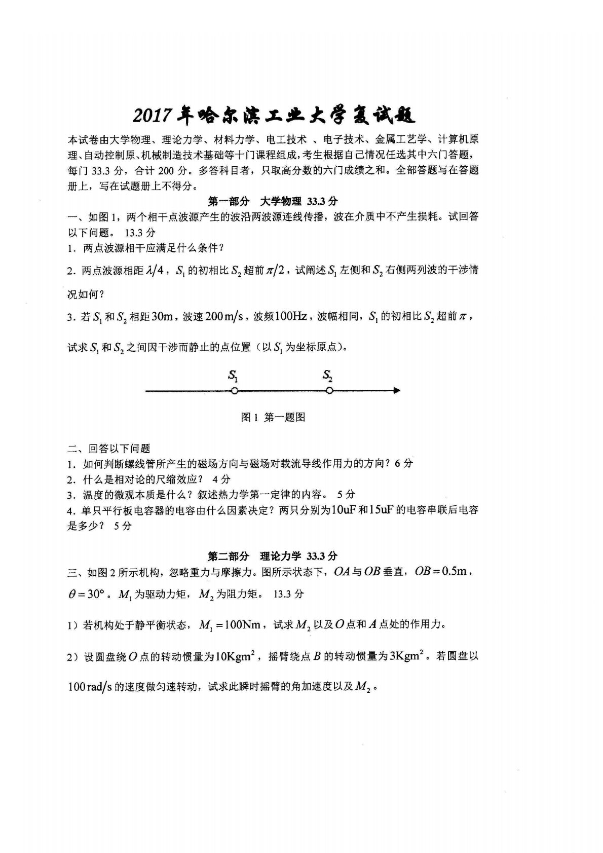 哈尔滨工业大学机械制造及其自动化2017年复试真题
