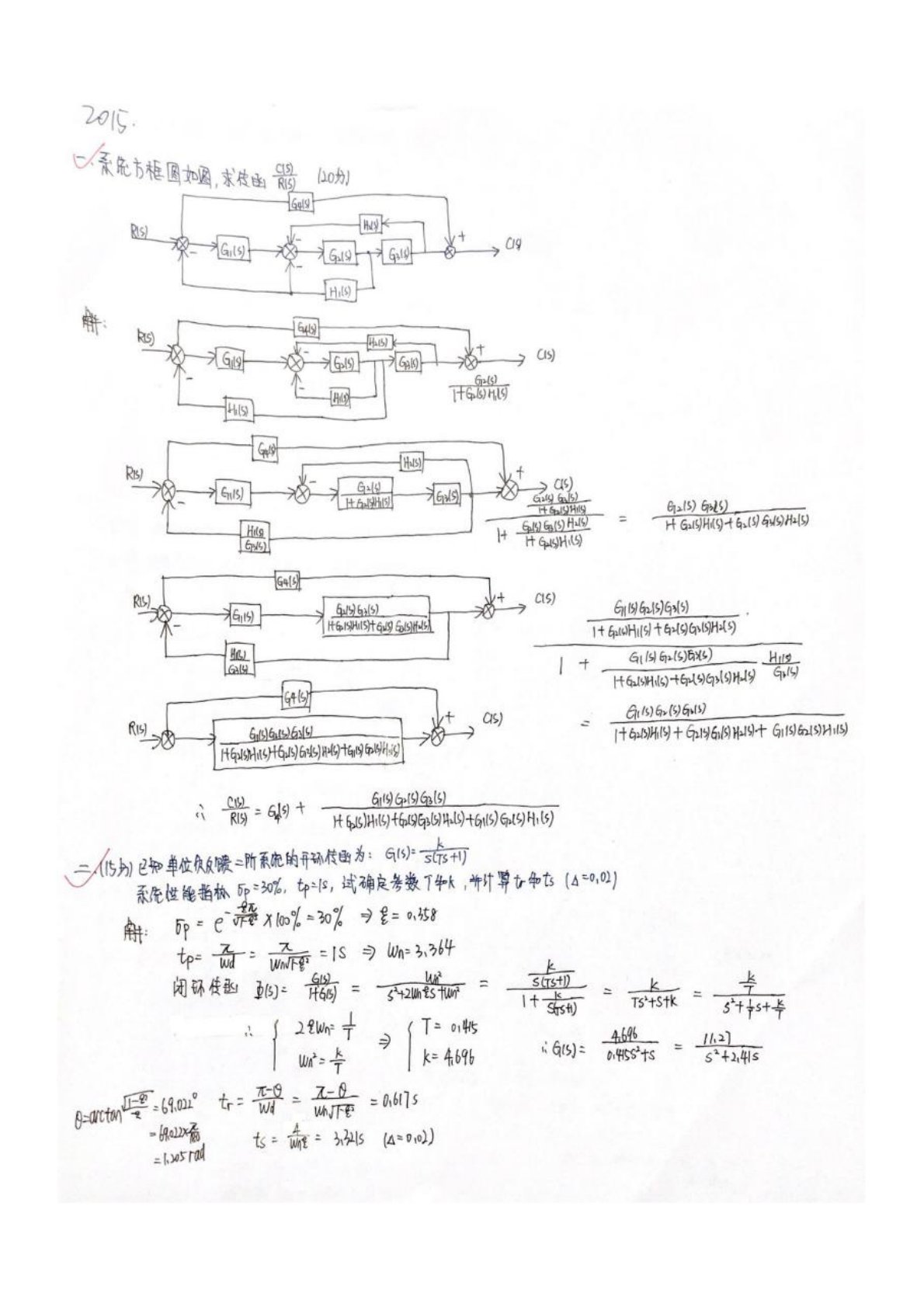 哈尔滨理工大学810自动控制原理2015年真题答案手写版