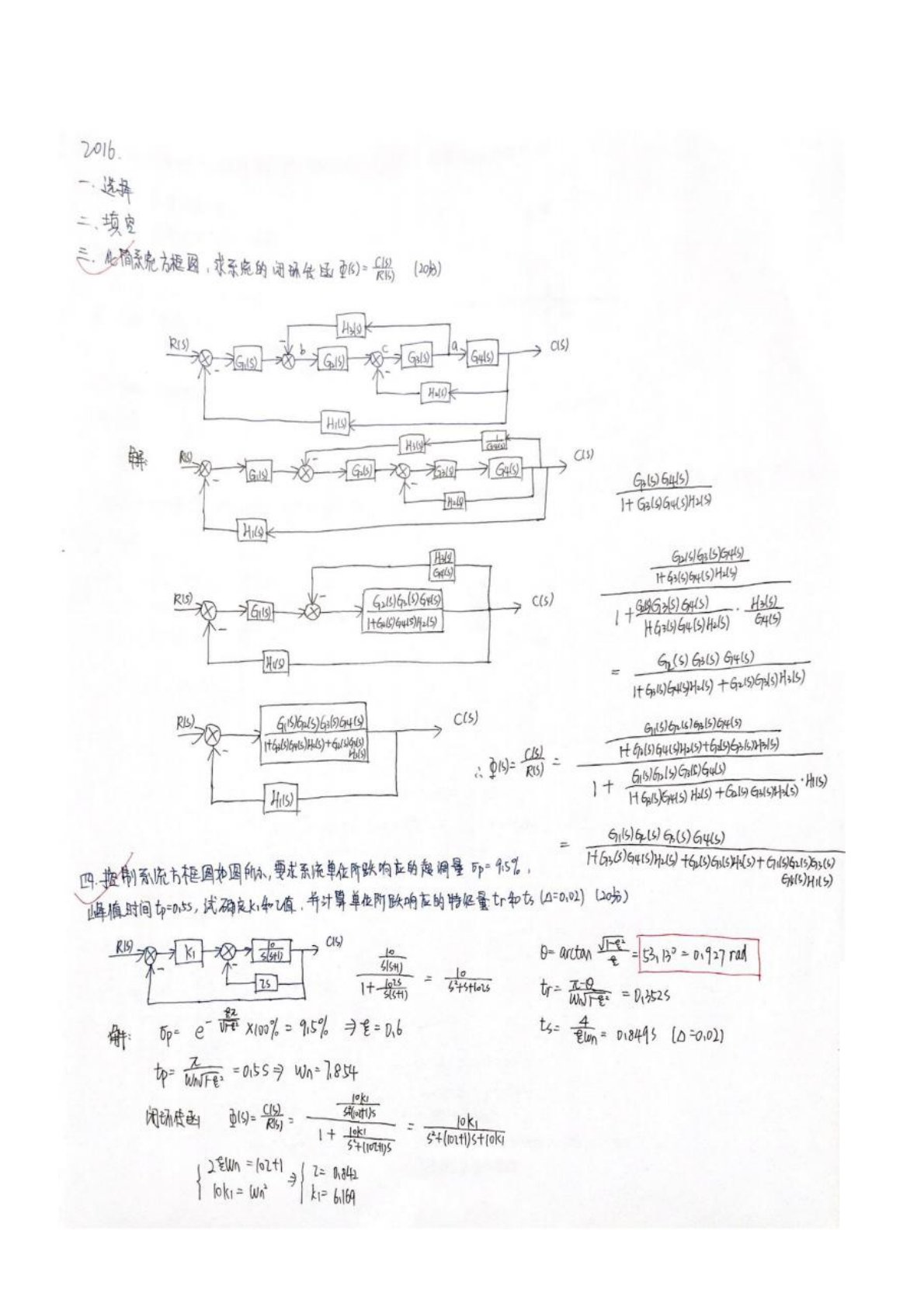 哈尔滨理工大学810自动控制原理2016年真题答案手写版