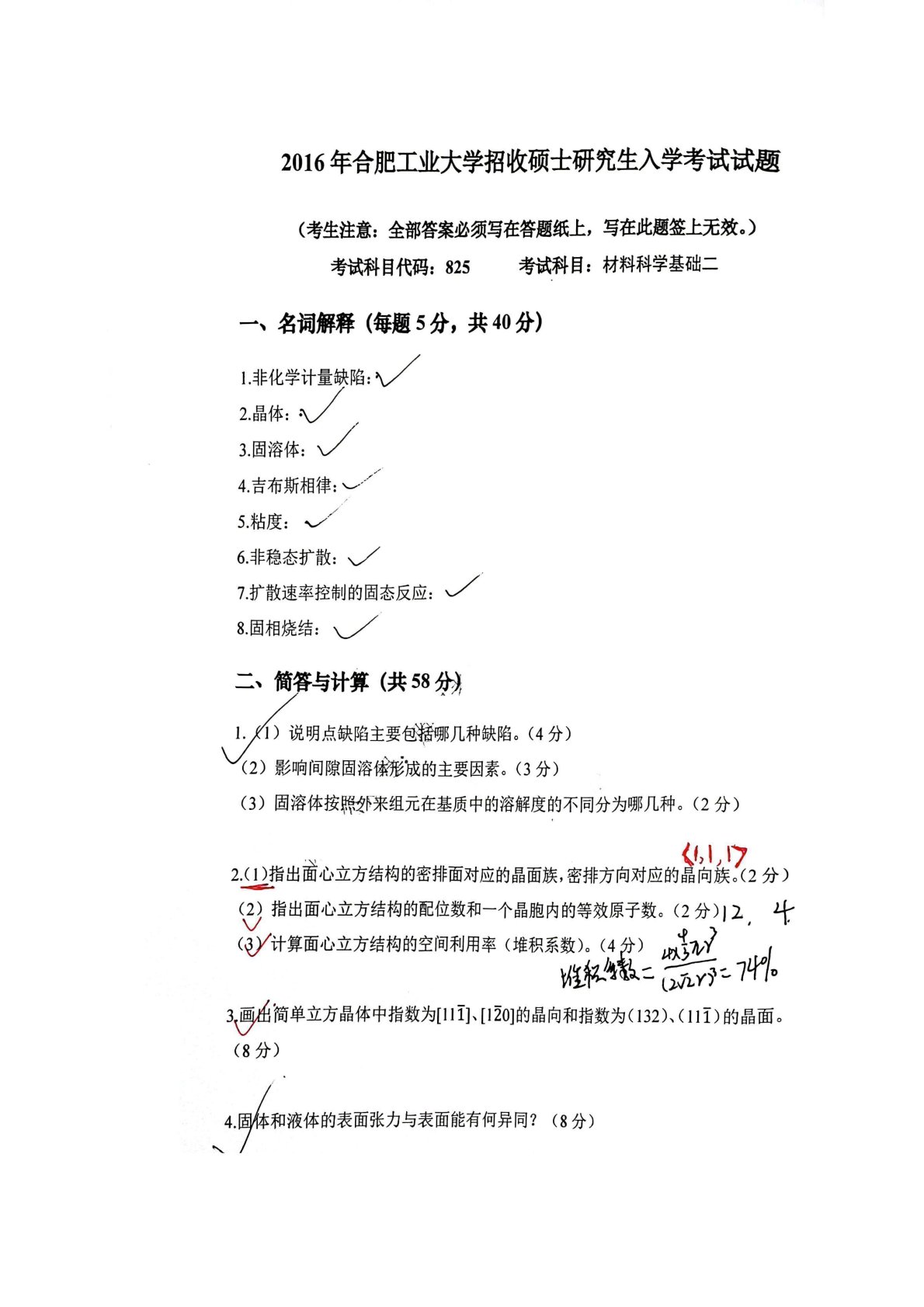 合肥工业大学815材料科学基础2016年真题