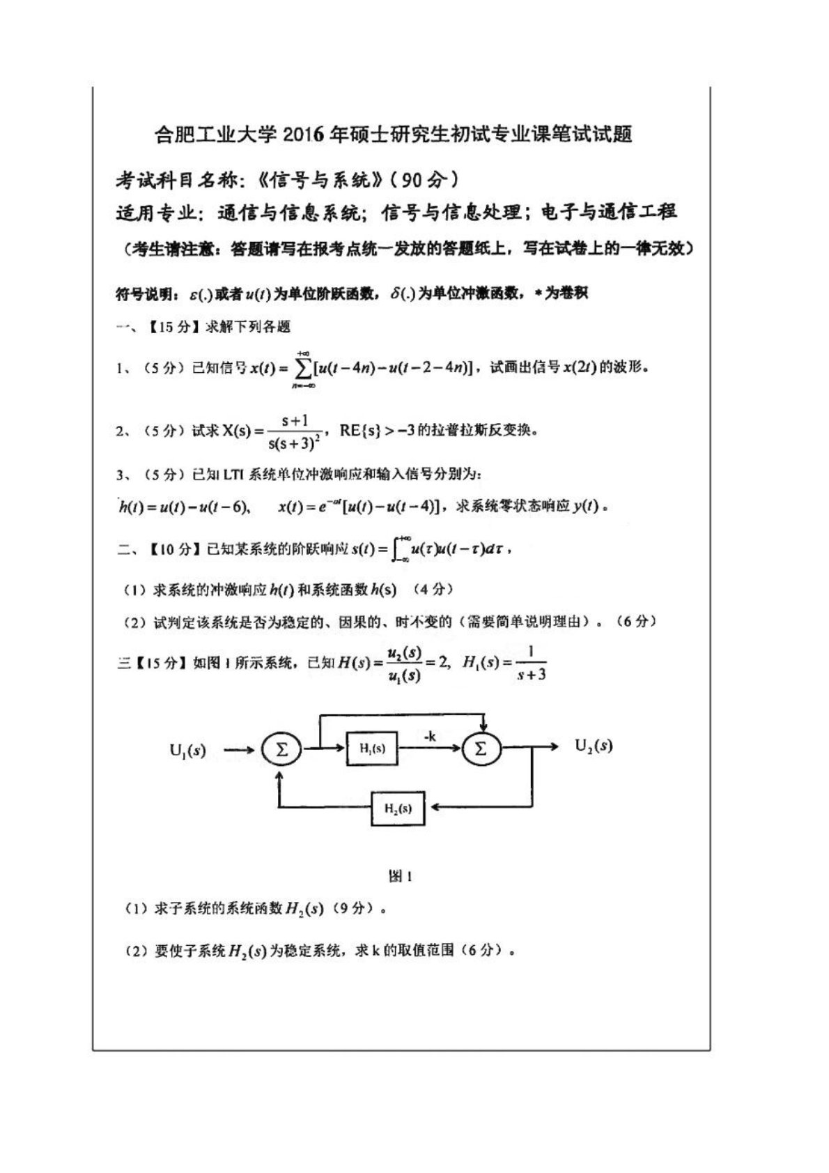 合肥工业大学833信号分析与处理综合2016年考研真题