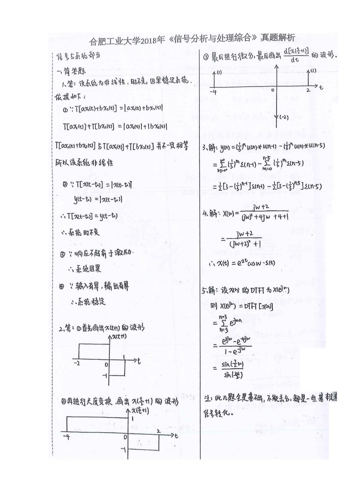 合肥工业大学833信号分析与处理综合2018年考研真题答案解析