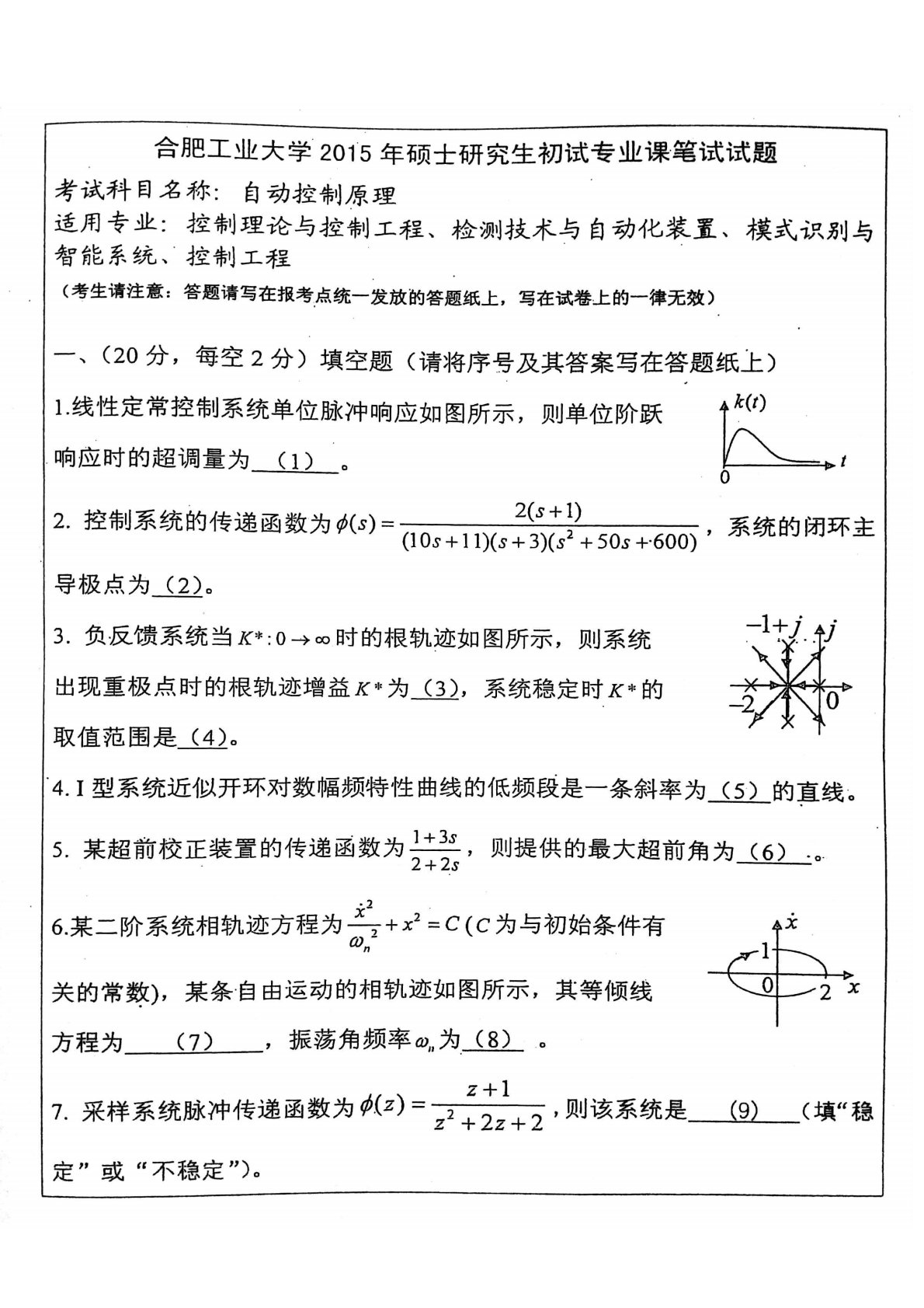 合肥工业大学834自动控制原理2015年考研真题