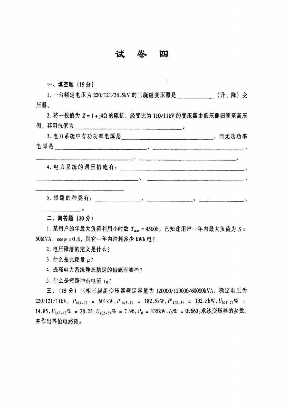 河海大学843电力系统分析2021年模拟题4