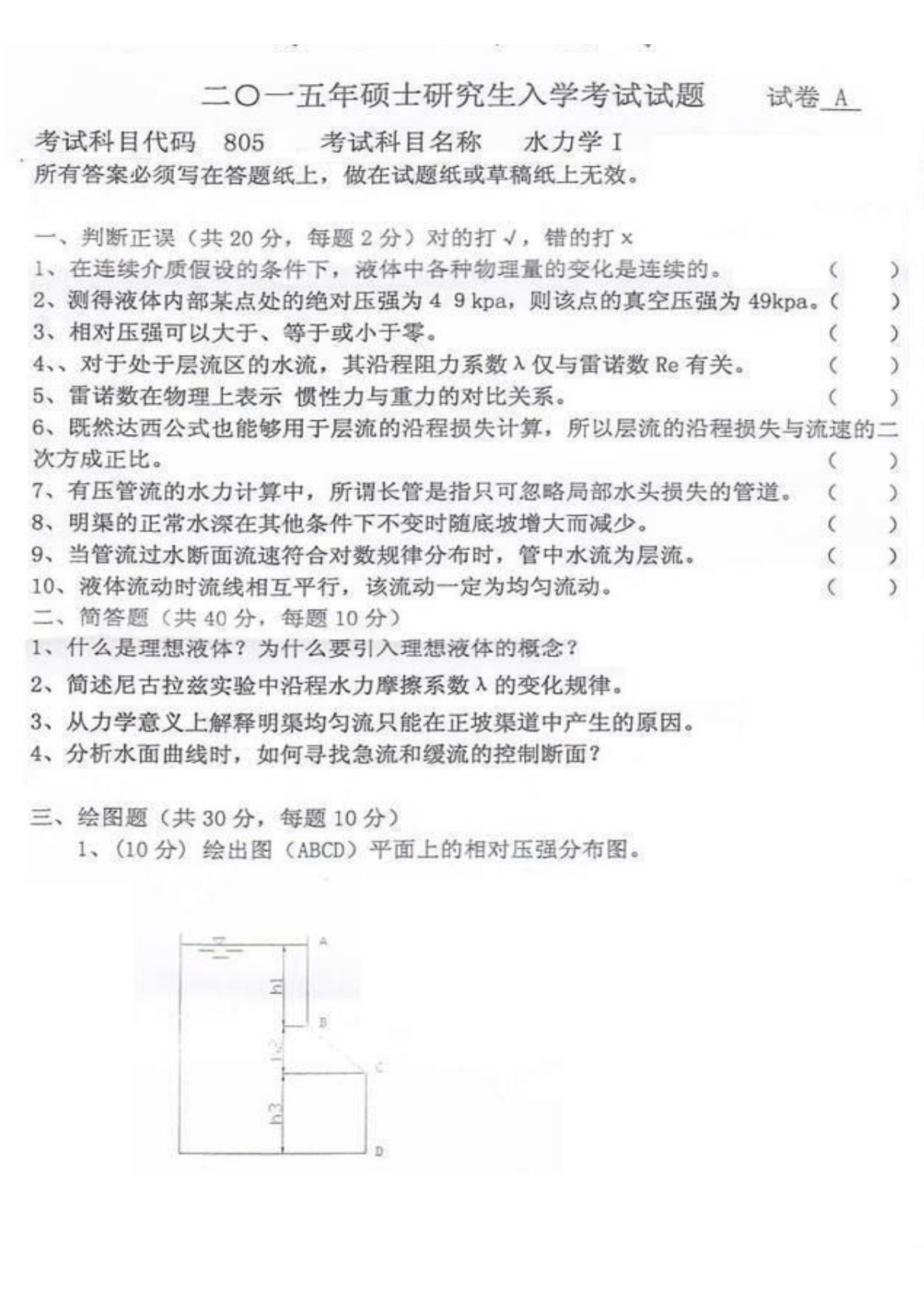 河北工程大学802水力学2015年考试真题