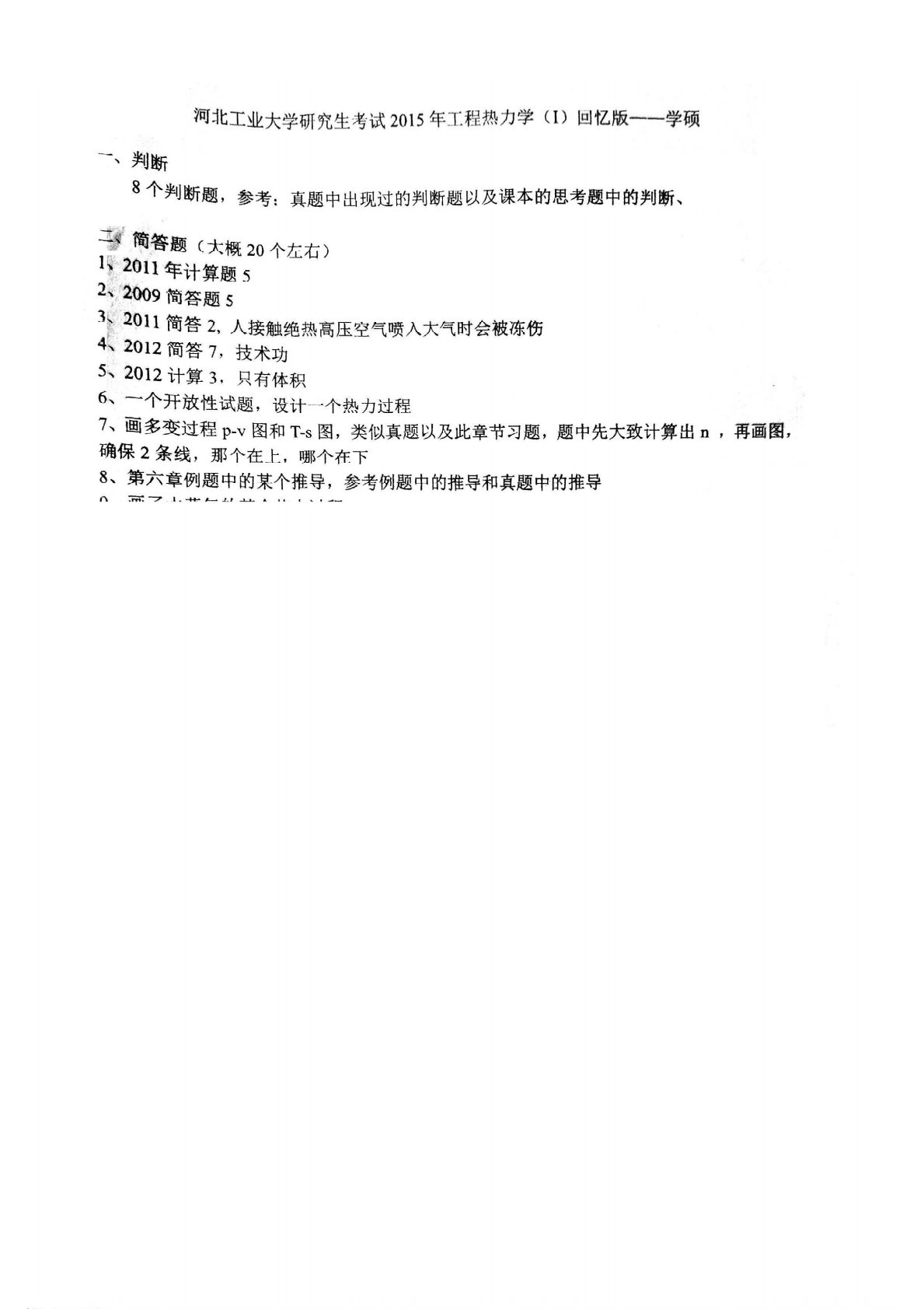 河北工业大学831工程热力学2015年真题回忆版