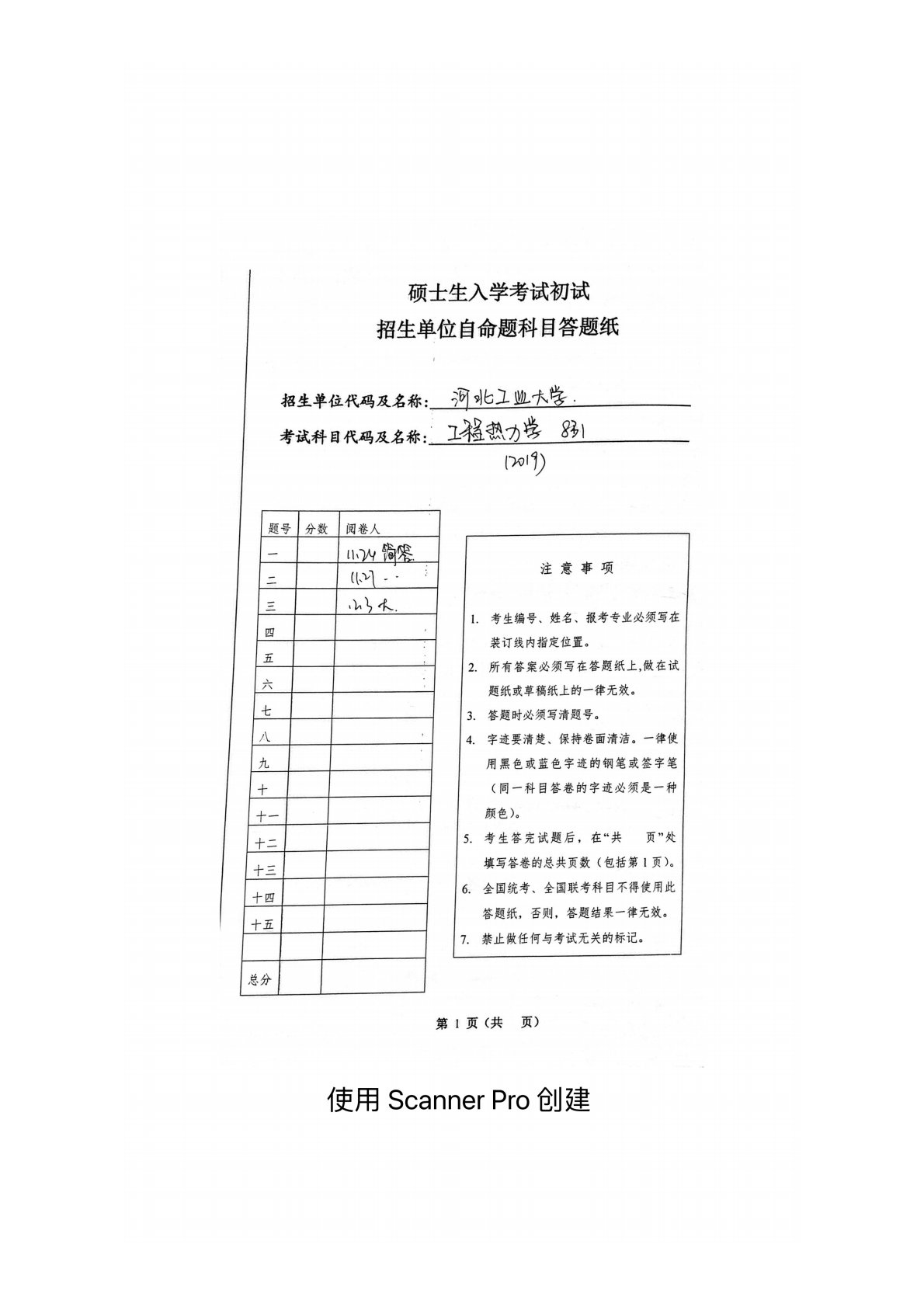 河北工业大学831工程热力学2019年真题(1)