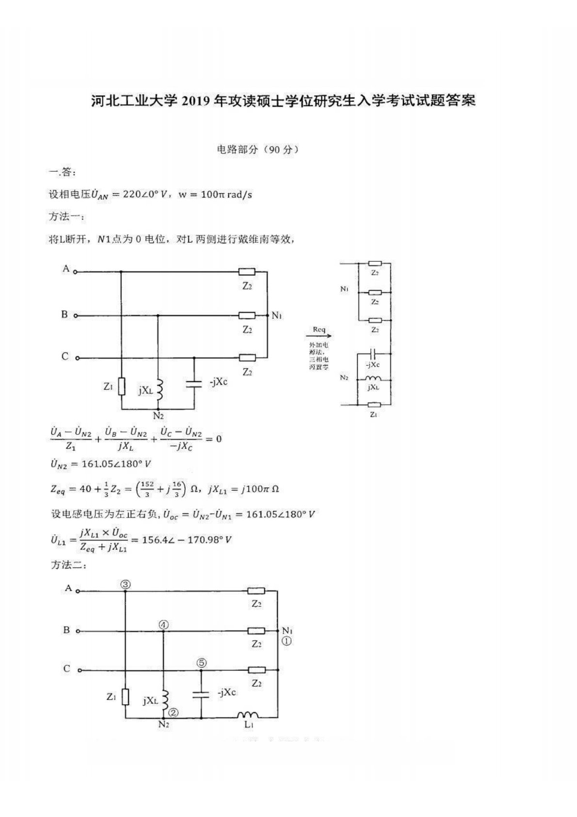 河北工业大学2019年840电工基础考研真题答案解析