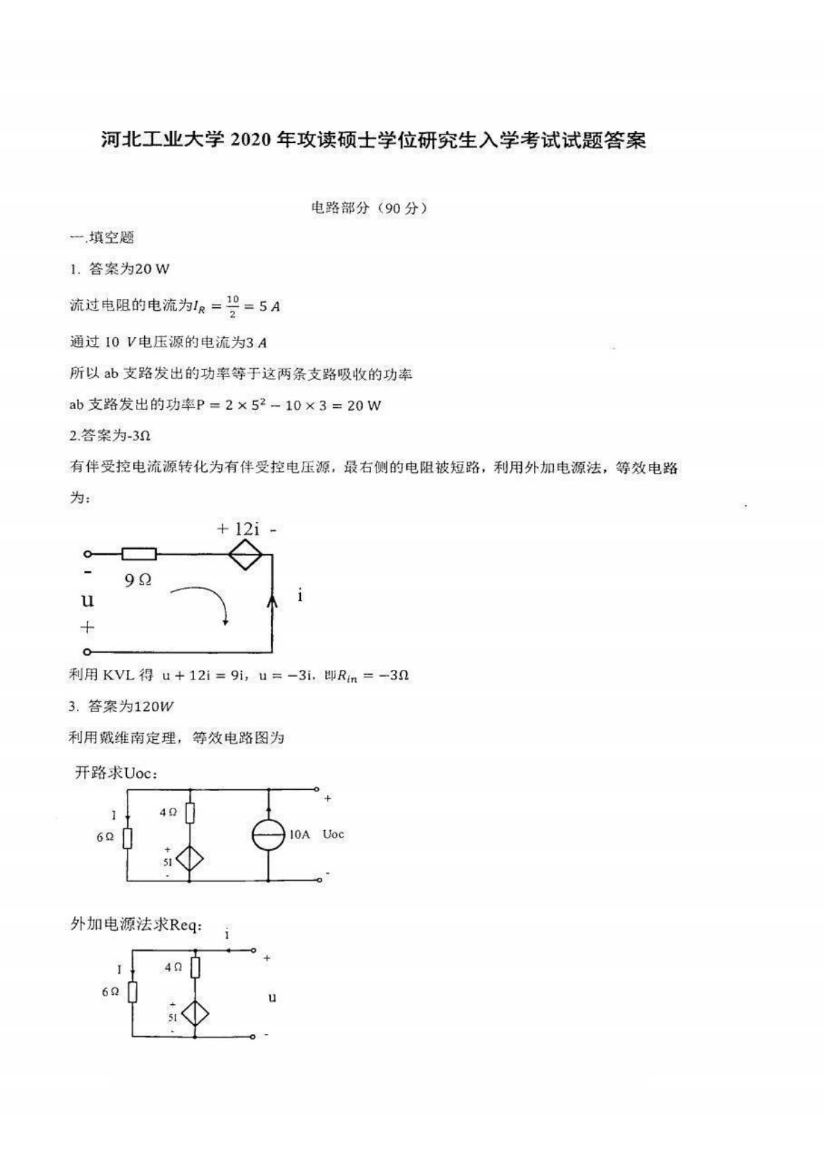 河北工业大学2020年840电工基础考研真题答案解析