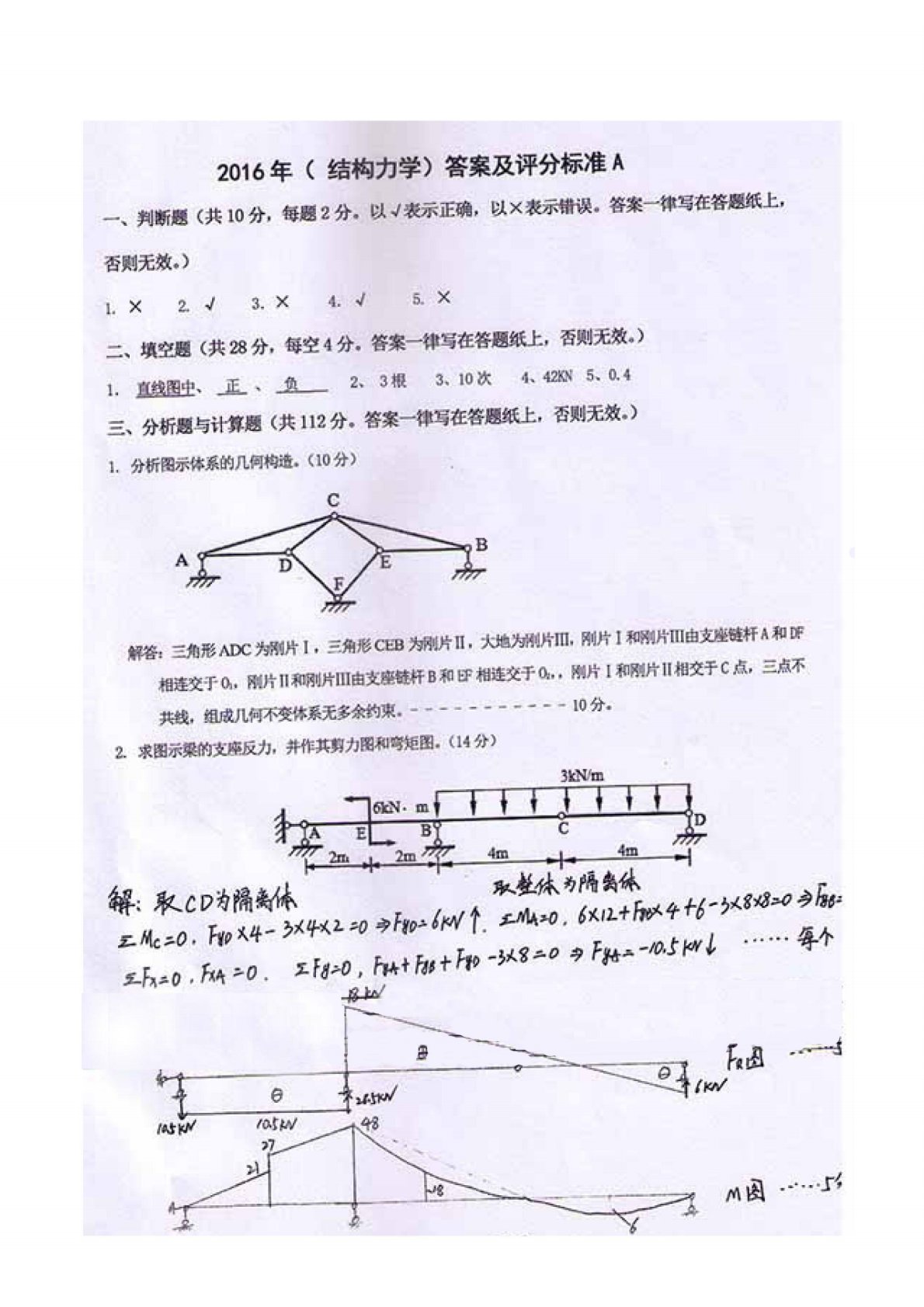 河北科技大学811结构力学2016年考研真题答案解析A