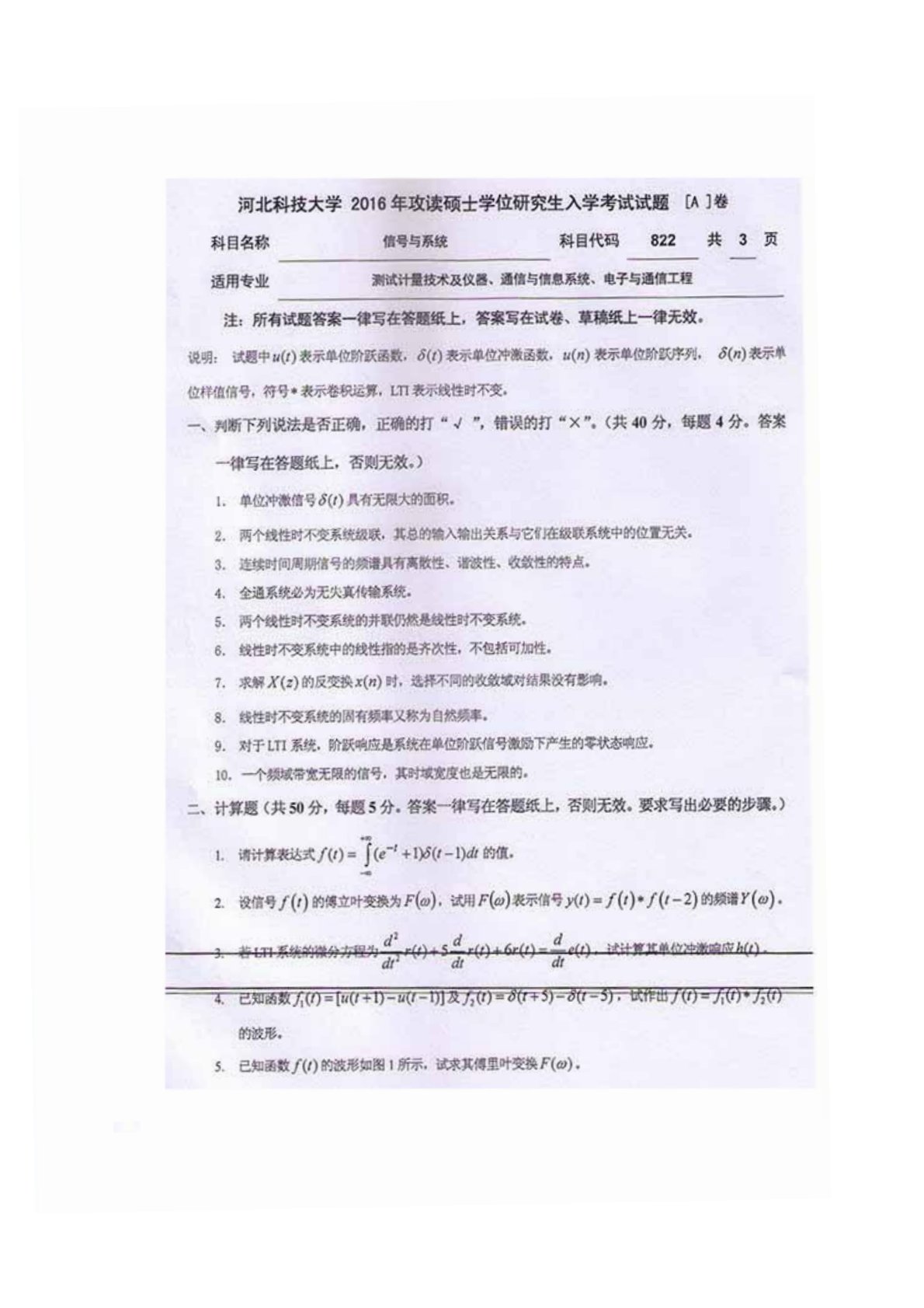河北科技大学822信号与系统2016年考研真题