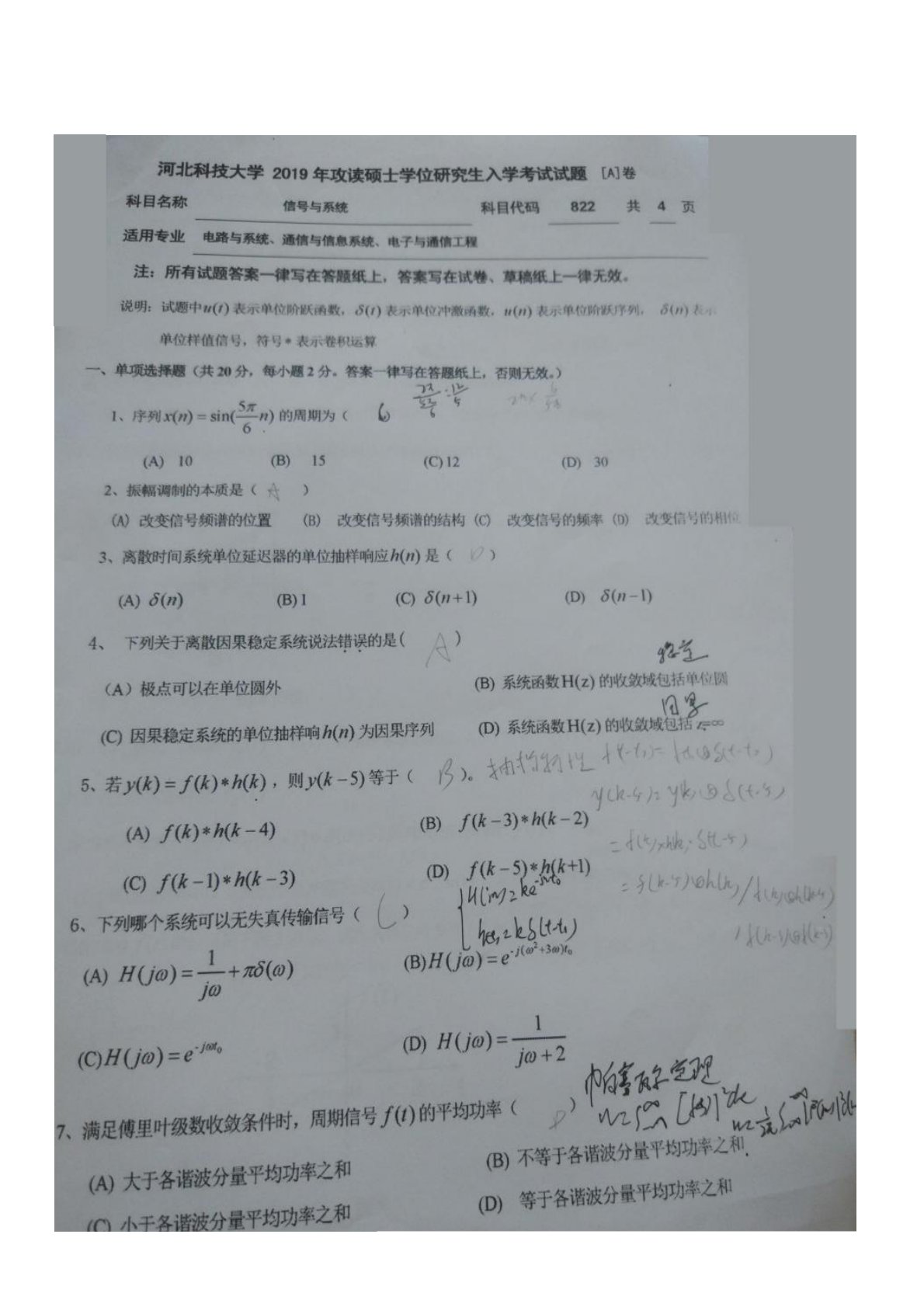 河北科技大学822信号与系统2019年考研真题
