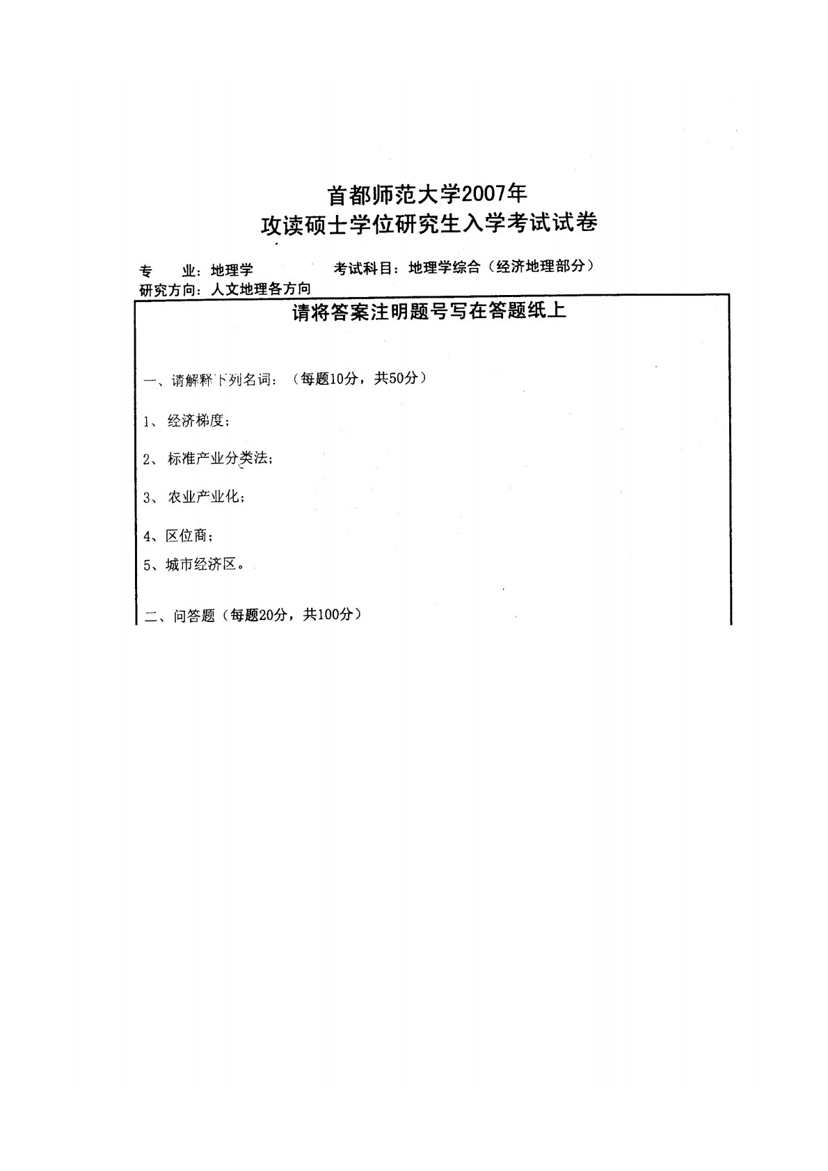 首都师范大学834经济地理学2007年真题